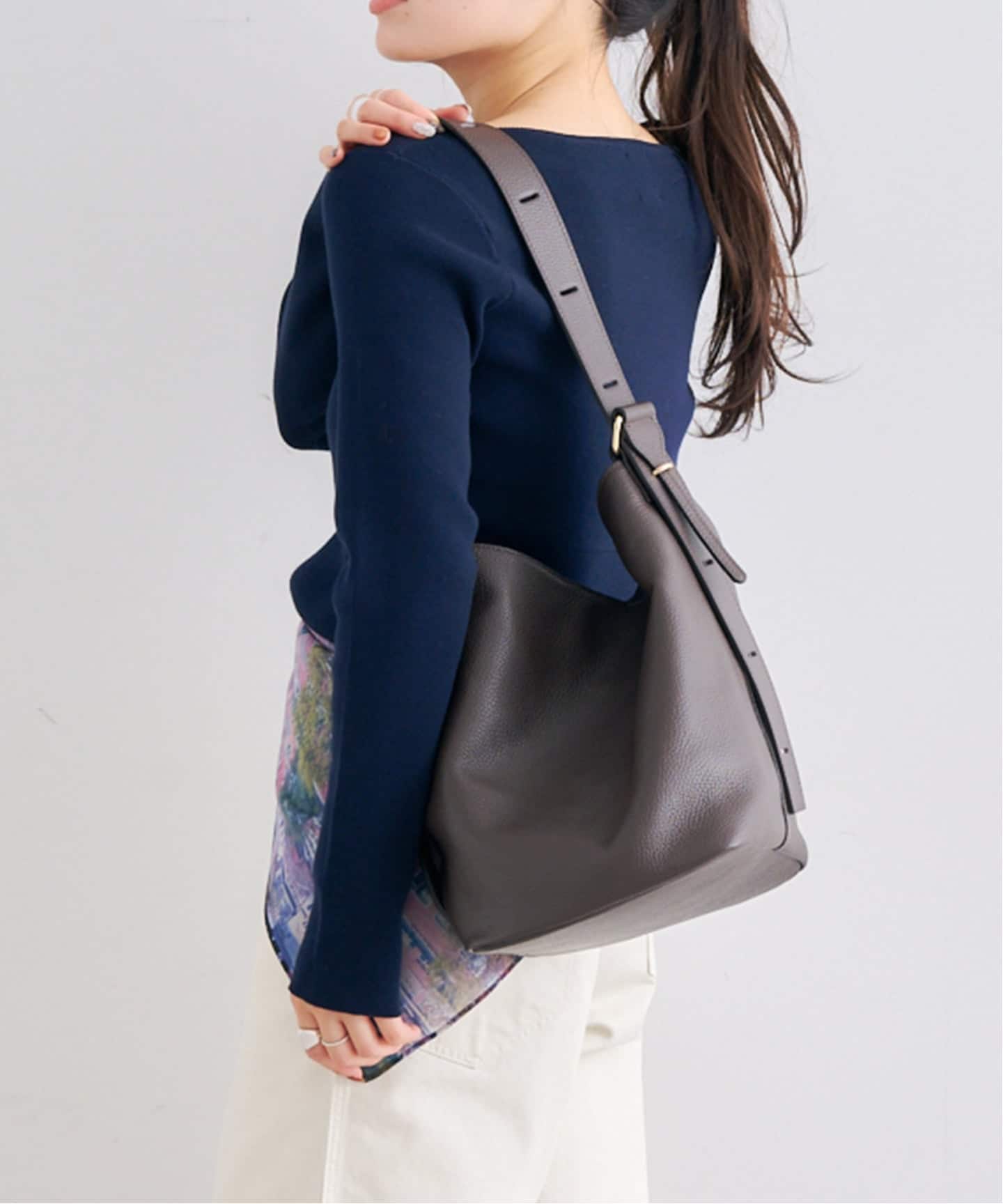 柔らかくしなやかな素材感が、女性らしいマイルドな雰囲気を演出するバック。