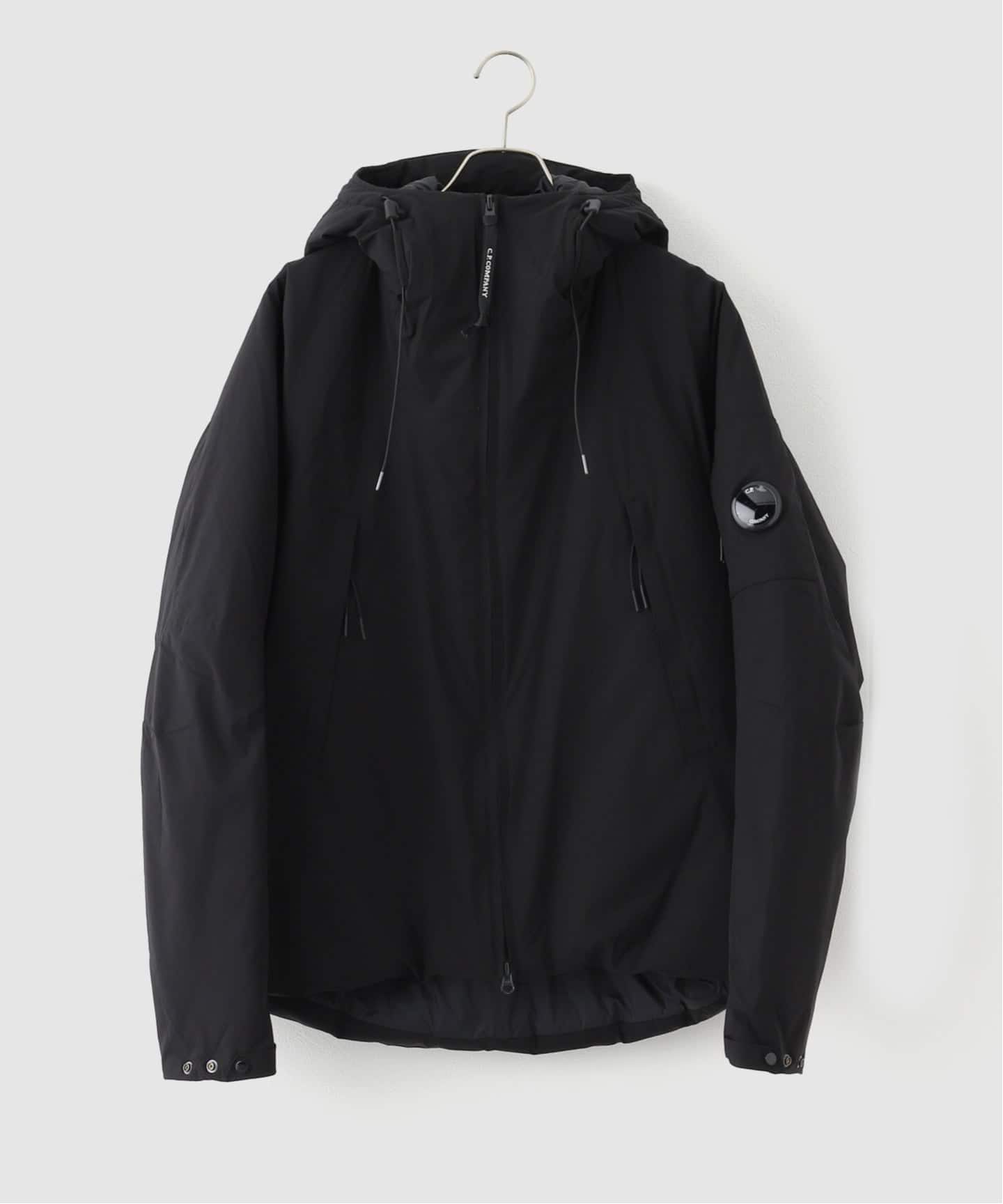 C.P. Companyのアイコニックなレンズディテールを備えた、Pro-Tek素材の中わたフーデッドジャケット。