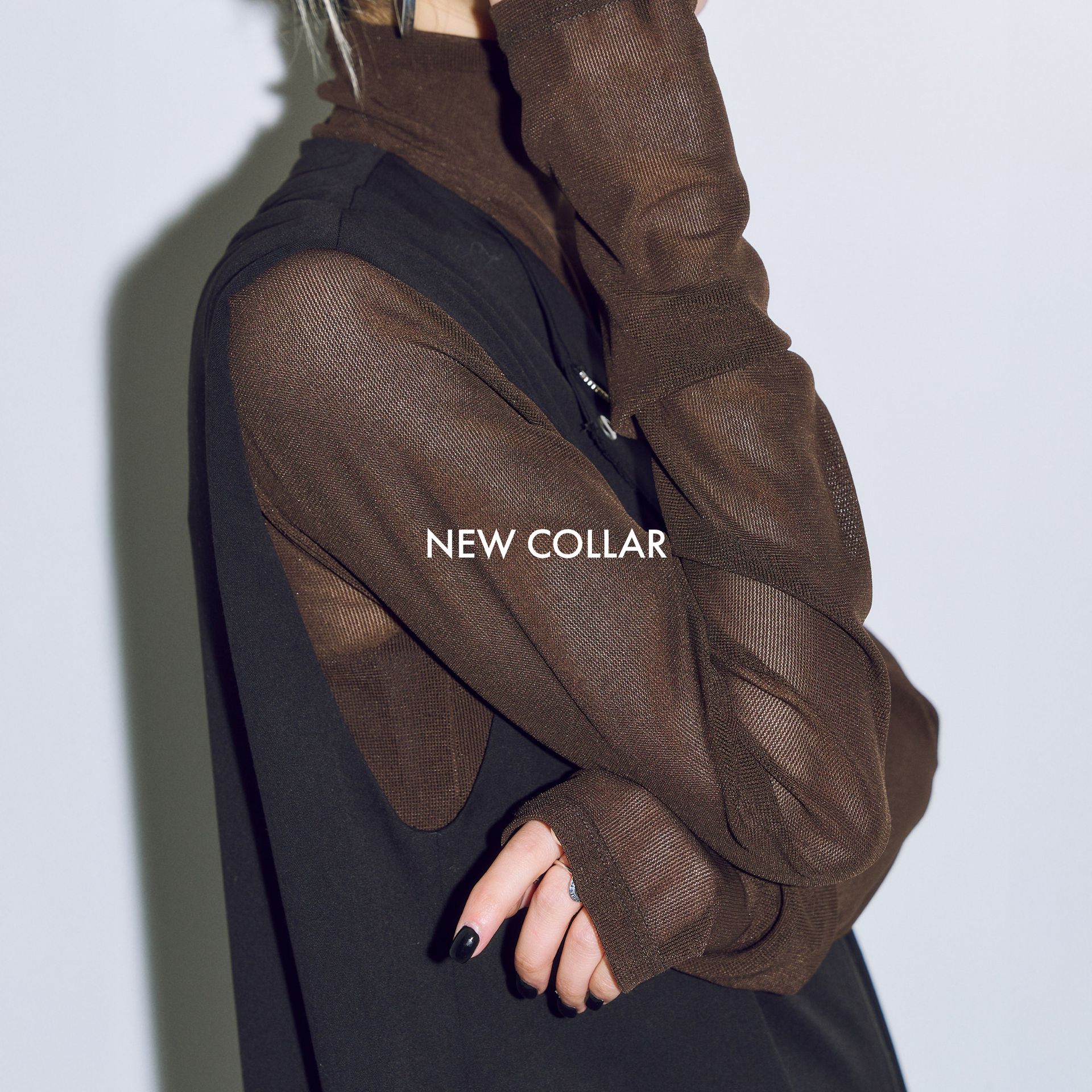 顎下ギリギリまでのハイネックは首にしっかりフィットするように調整し、だれることなく、着るだけで決まるバランスに仕上げています。