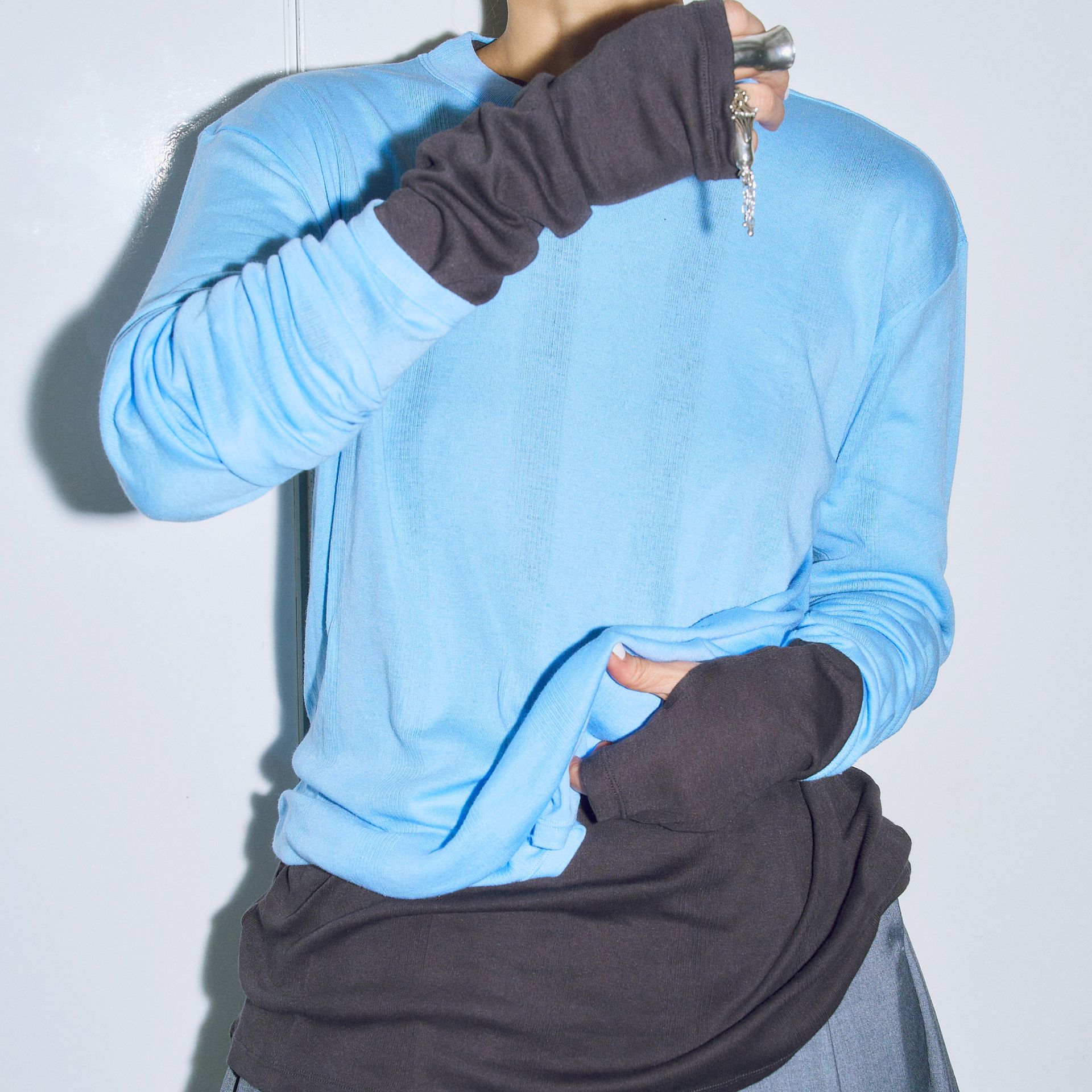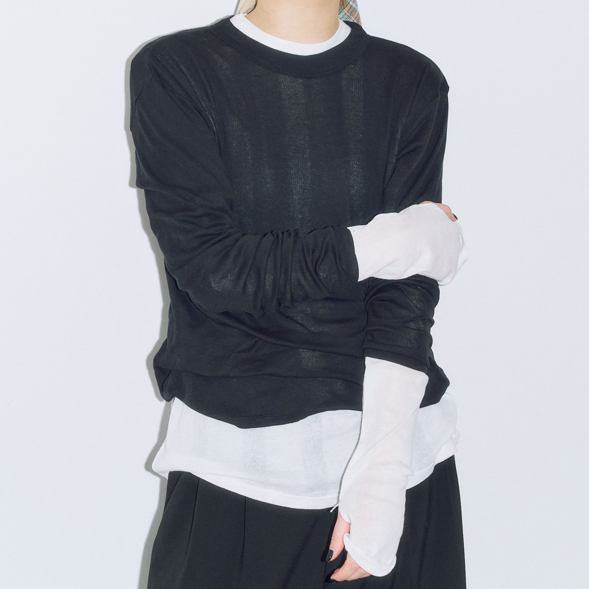 ロングスリーブとサムホールがレイヤード時のアクセントになり、袖口から覗かせるだけでスタイリングに奥行きをプラス。