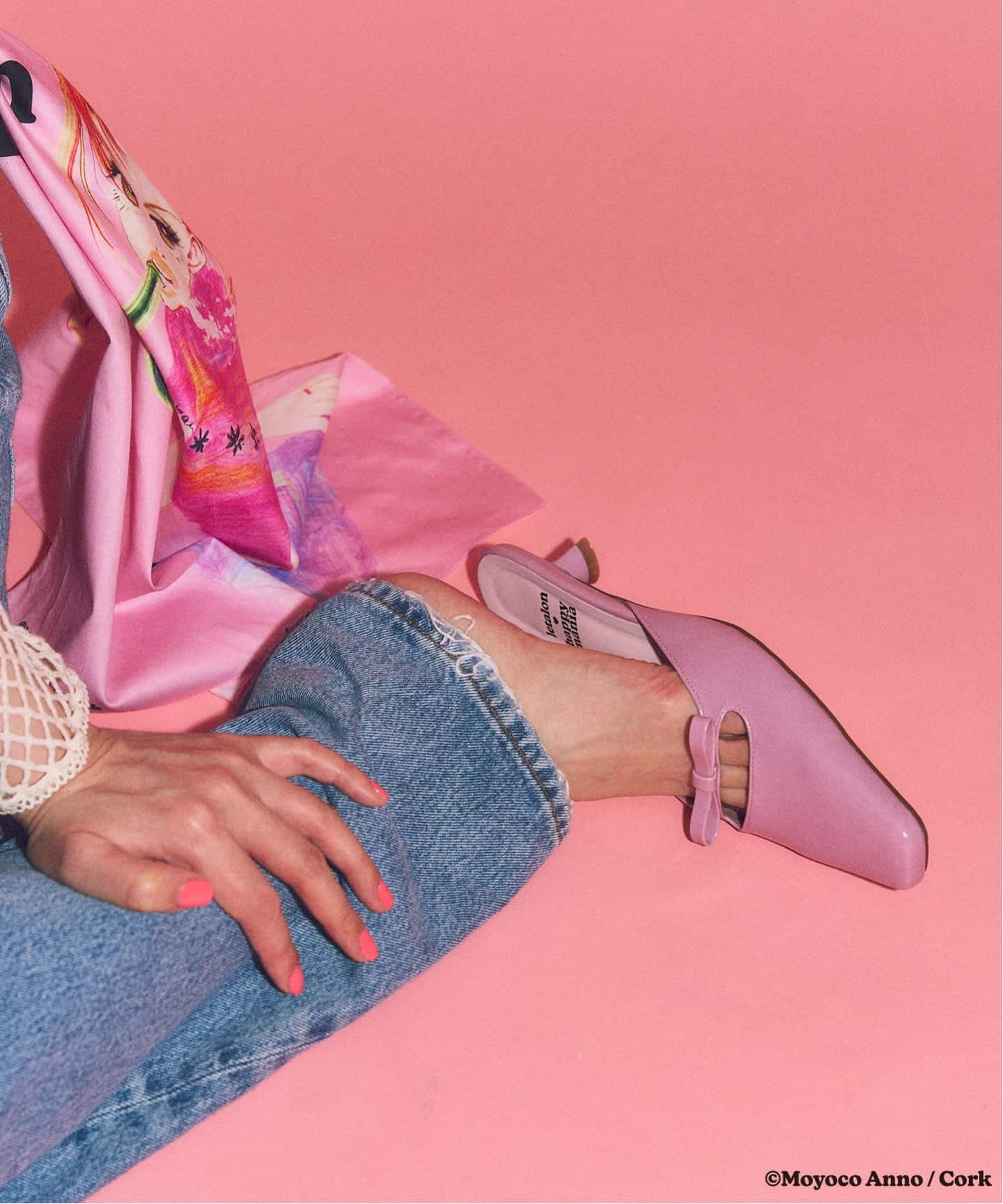 つま先長めのカモノハシシルエットに細リボンが大人かわいいミュール。