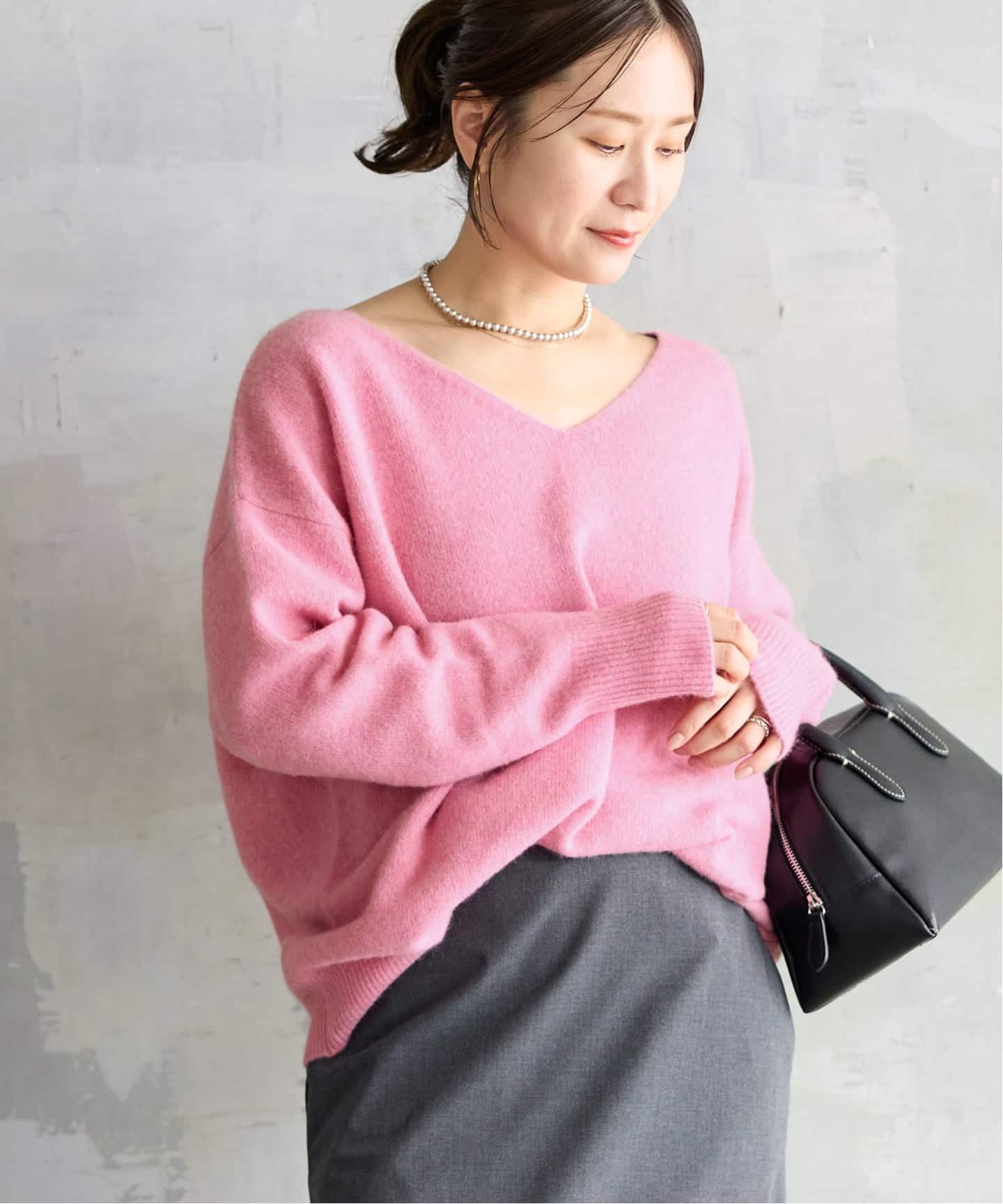 コットンのような軽くて毛羽立ちにくいお素材感の、Vネックニット。