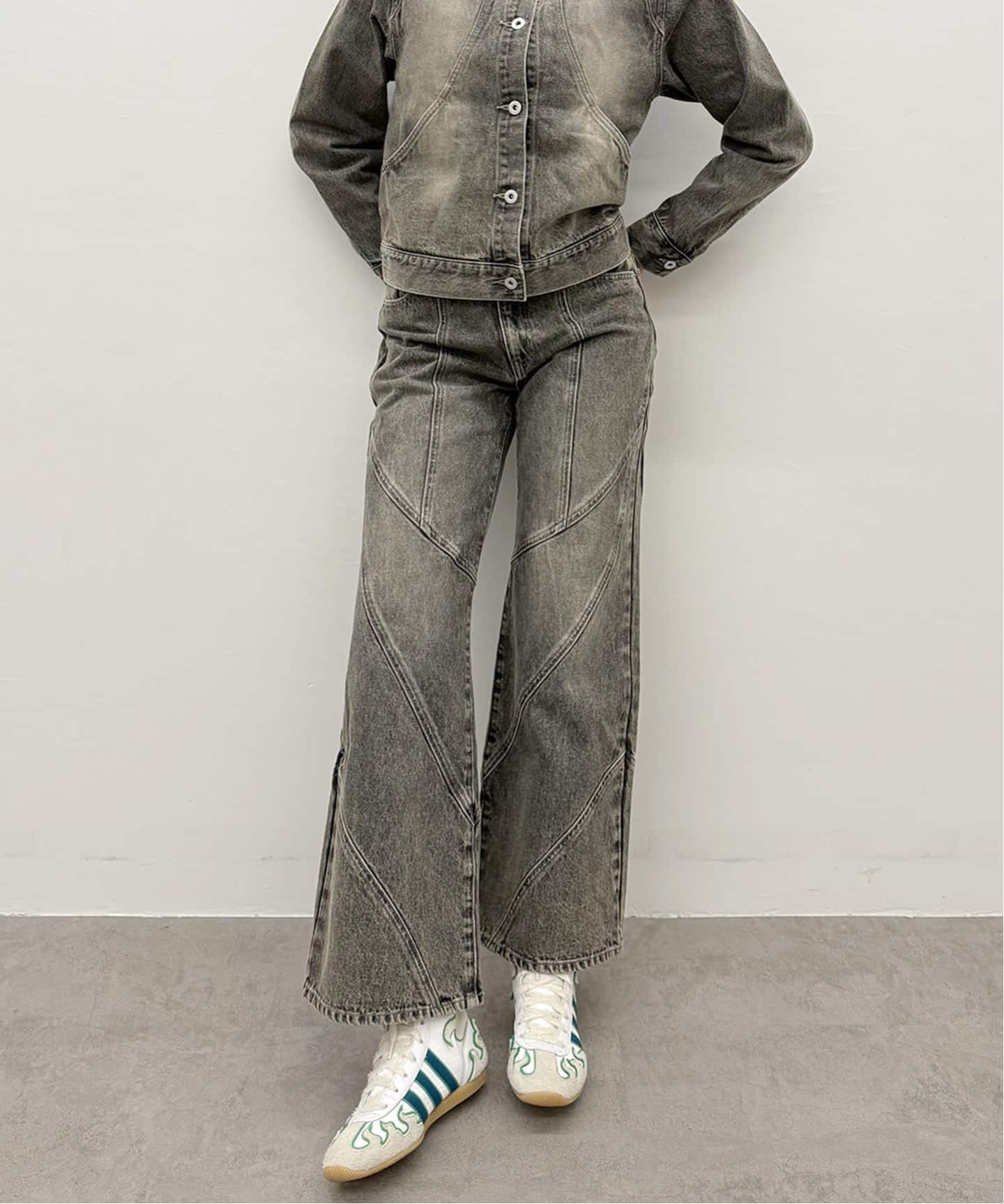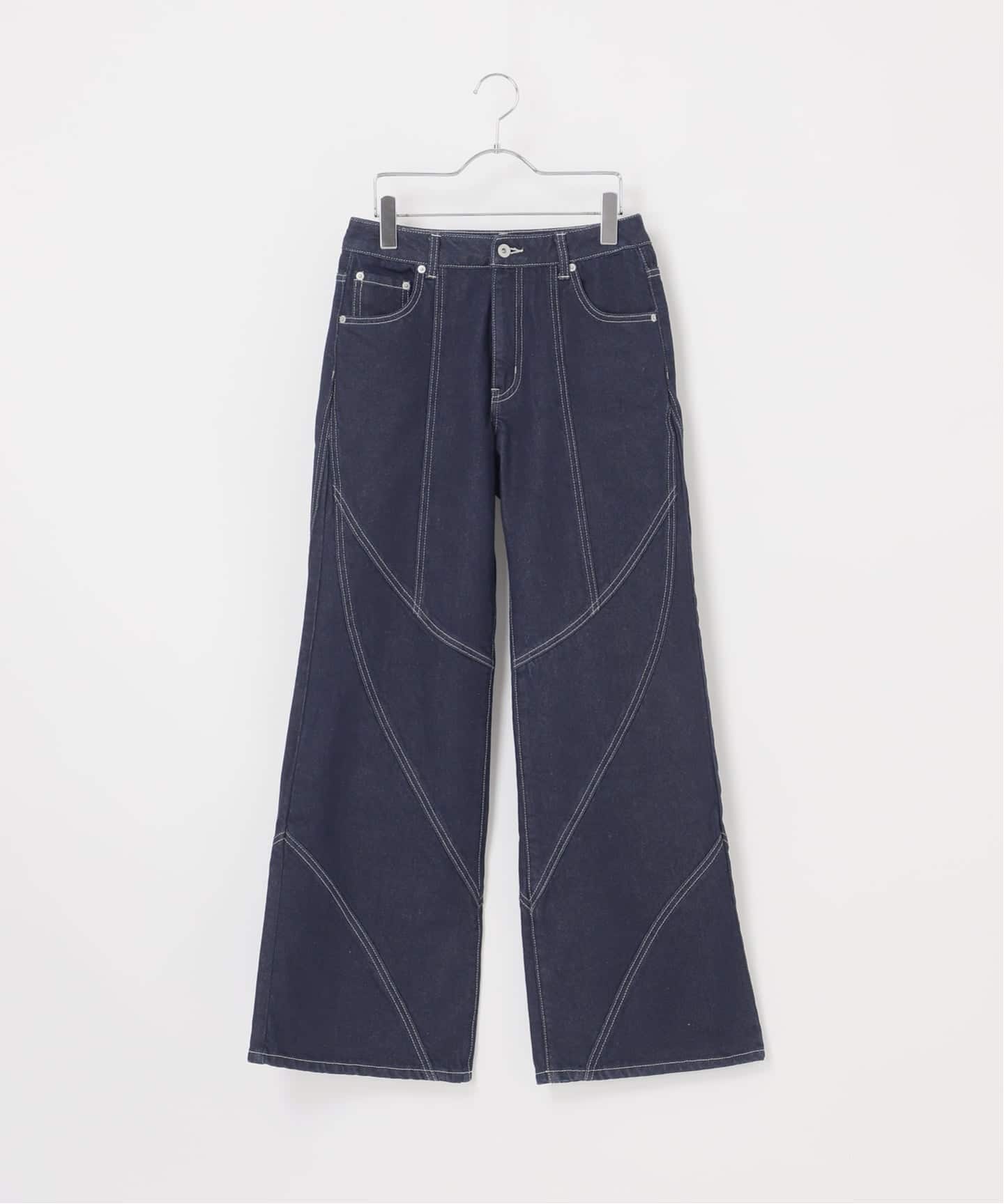 パネル切替が特徴の、ワイドストレートデニムパンツ。