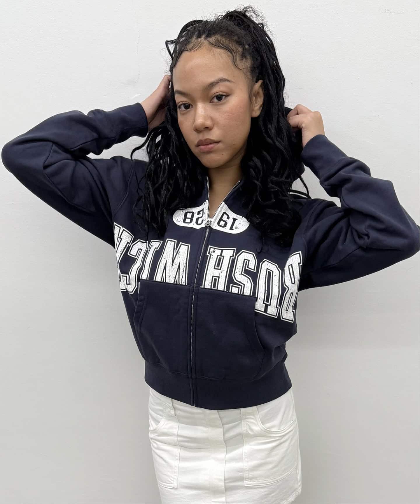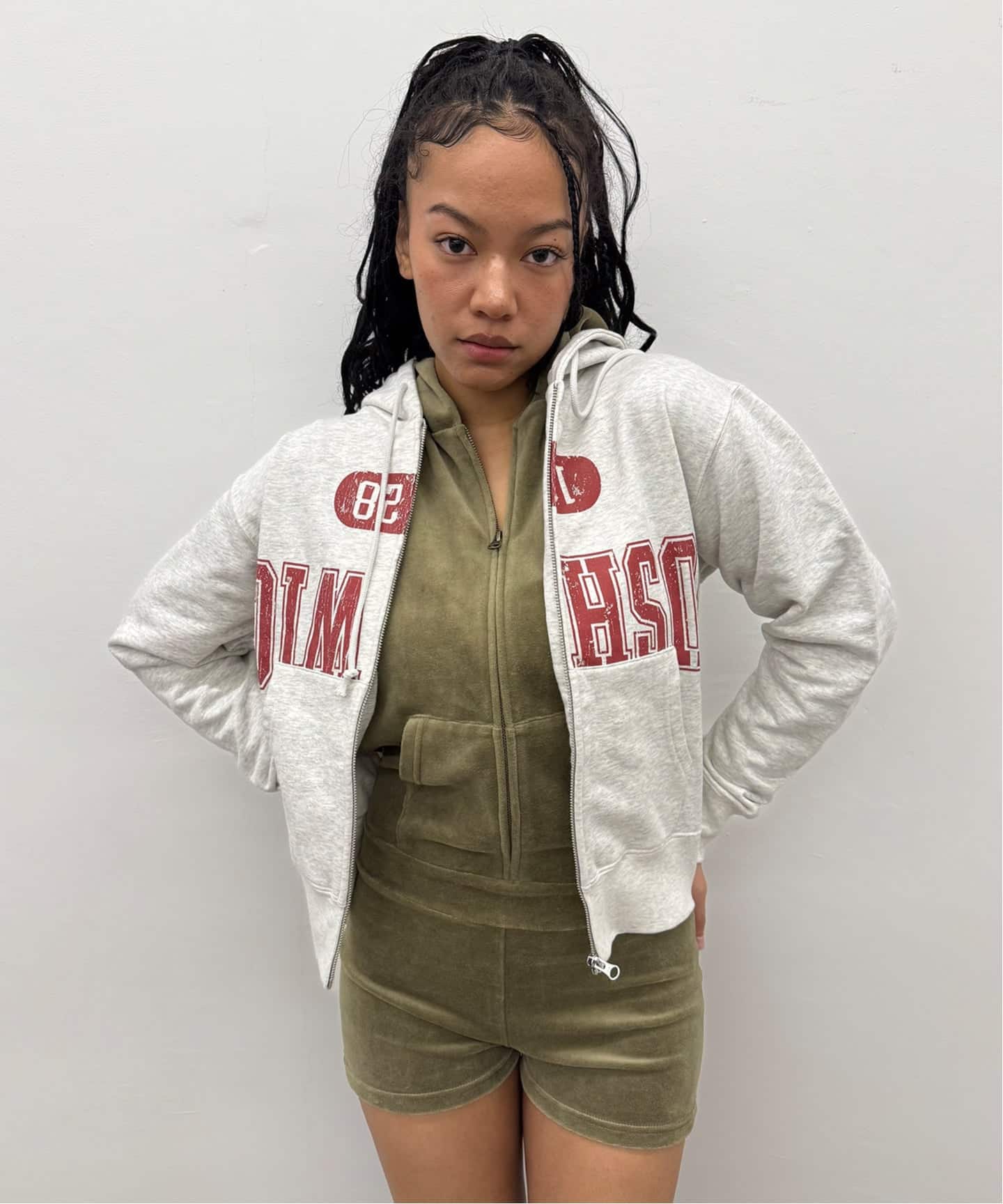 古着を再構築したようなデザインが特徴の、フロントジップフーディー。