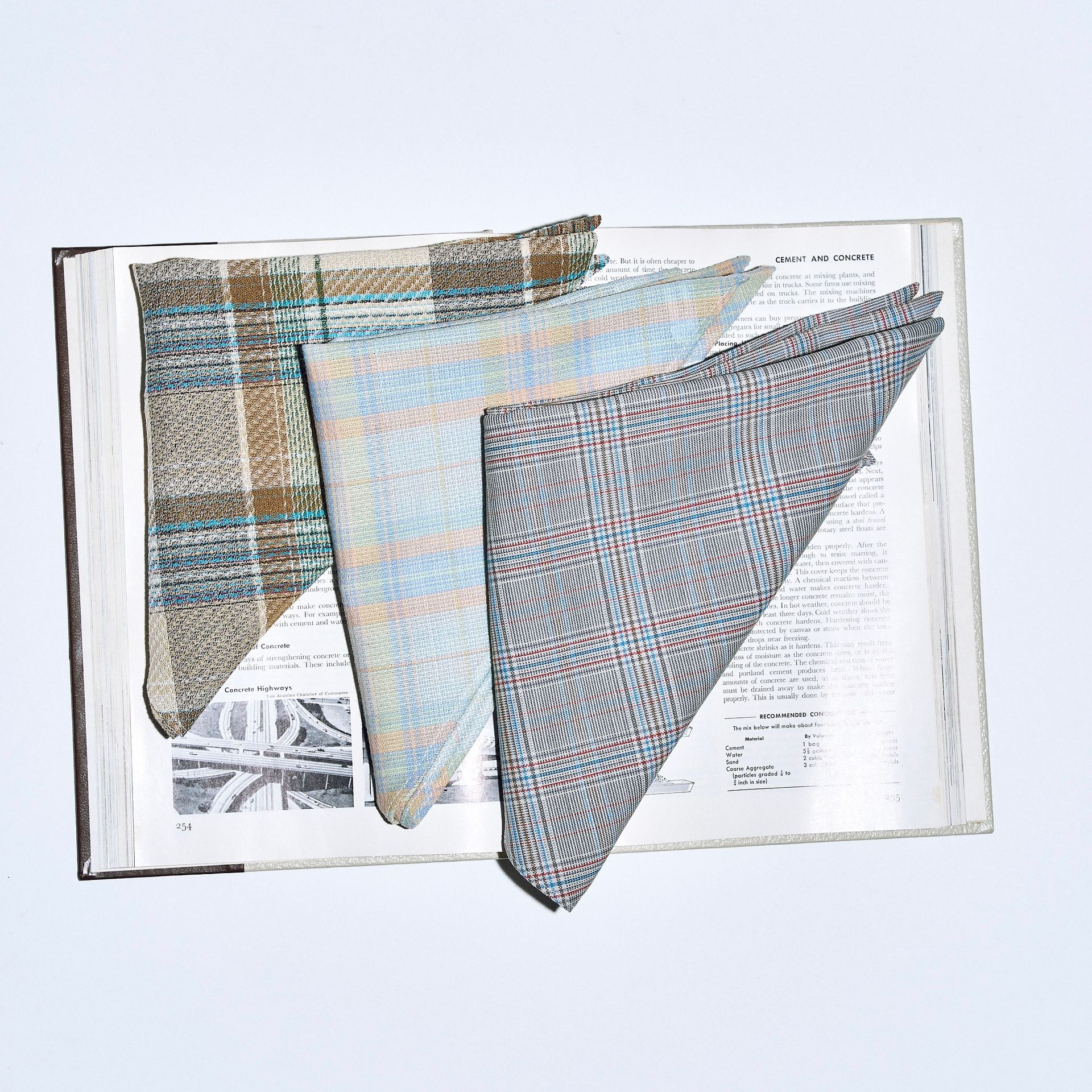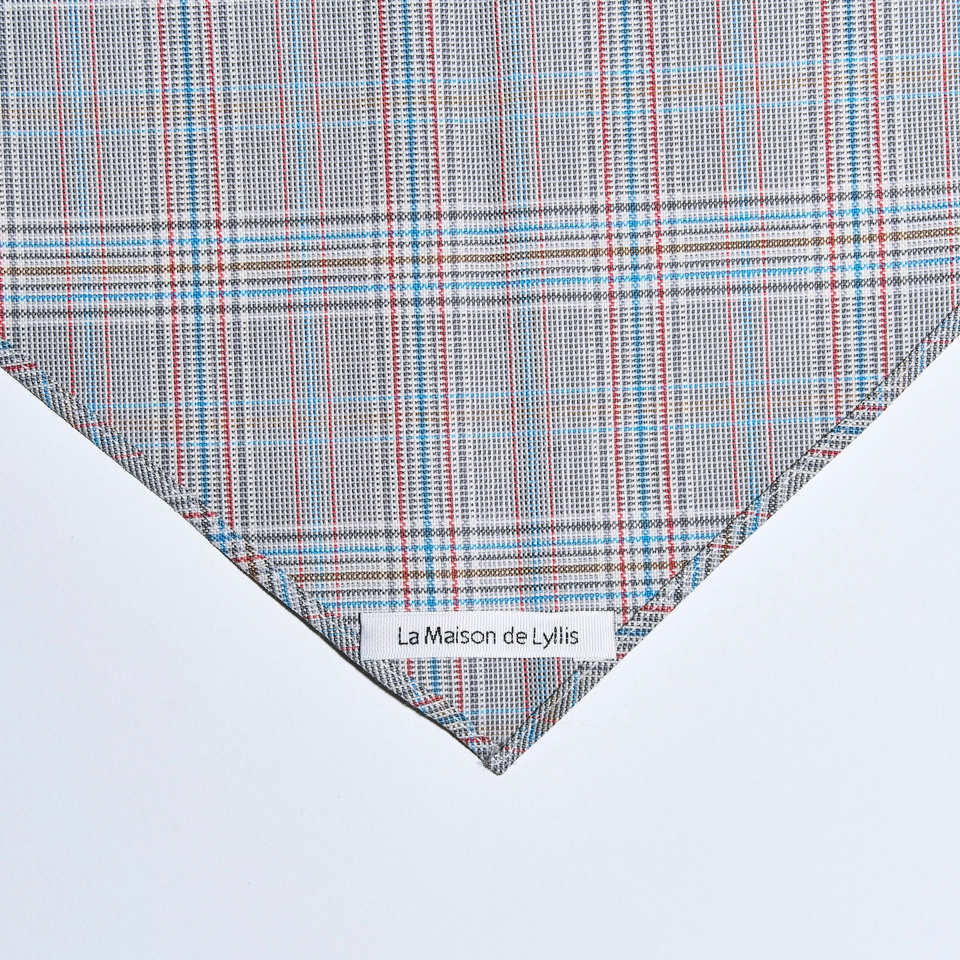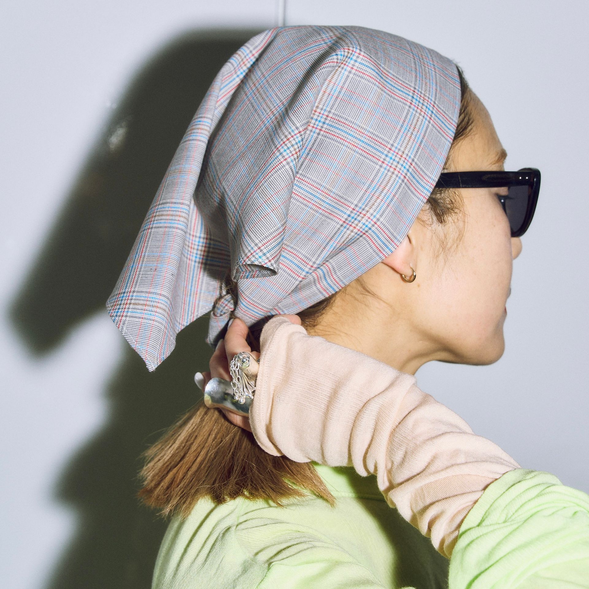 デッドストックの梳毛先染めウールファブリックはシーズンレスで使用できる素材感で、バンダナのようなカジュアルさと、他にはない特徴 的なカラーリングがスタイリングにポイントをつくってくれるアイテム。