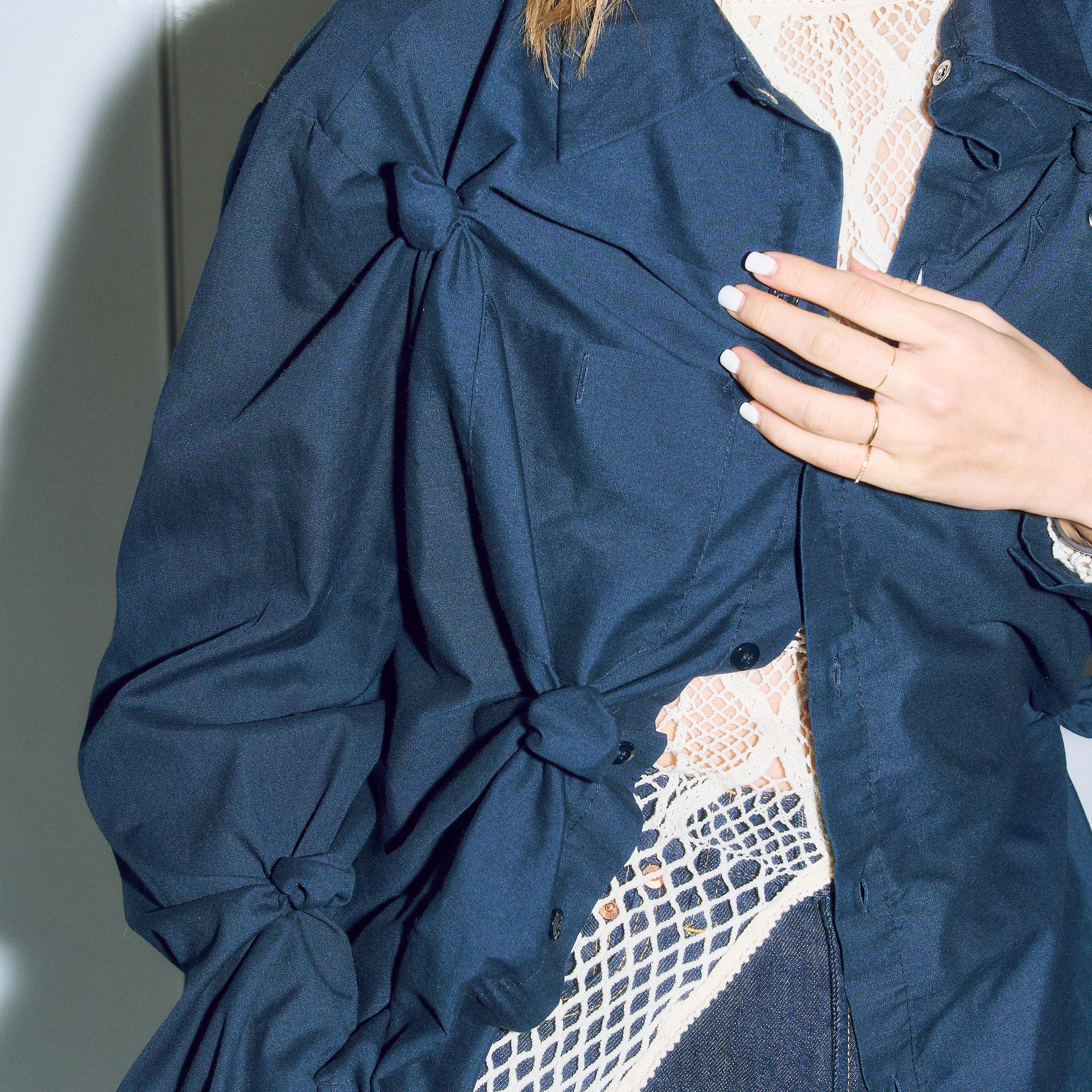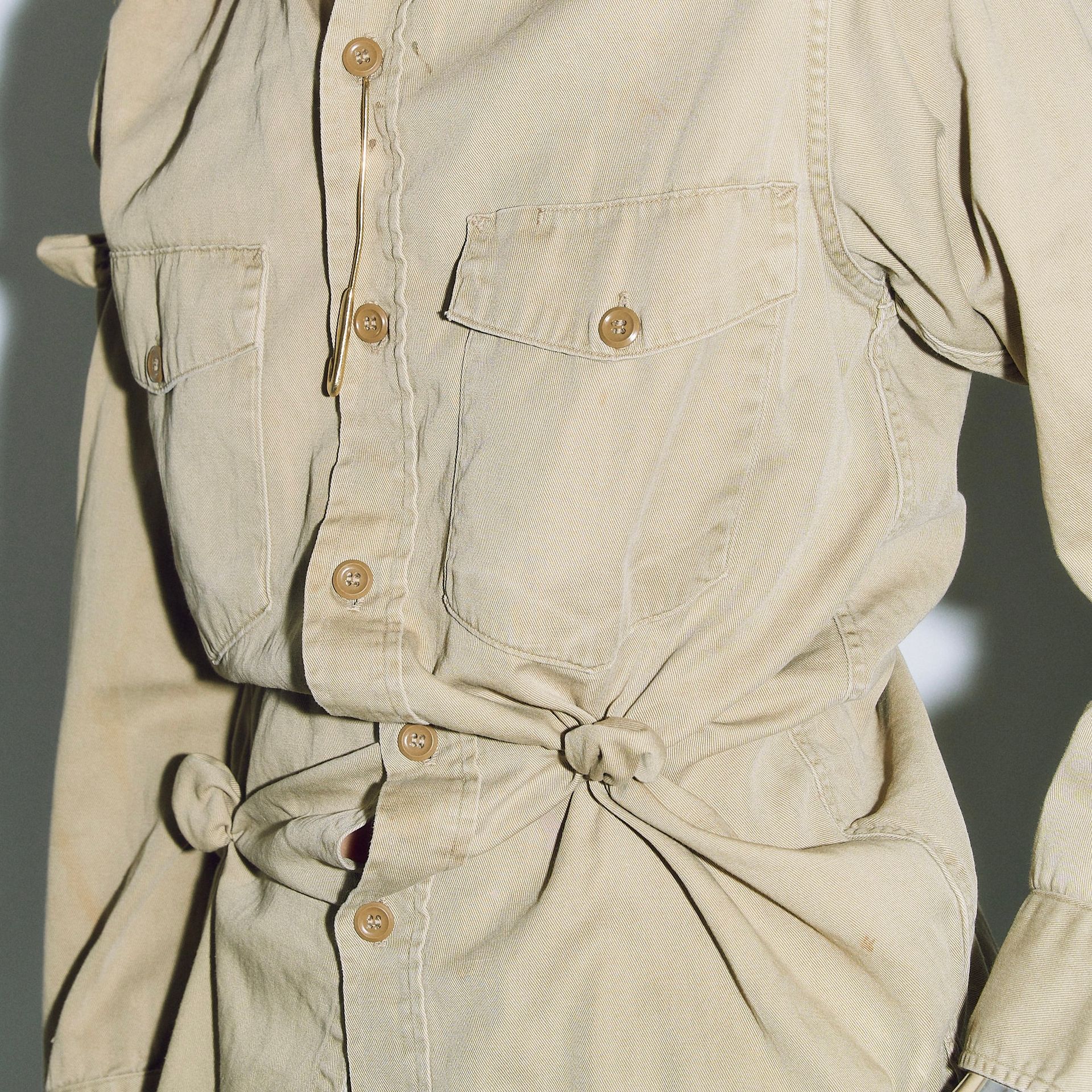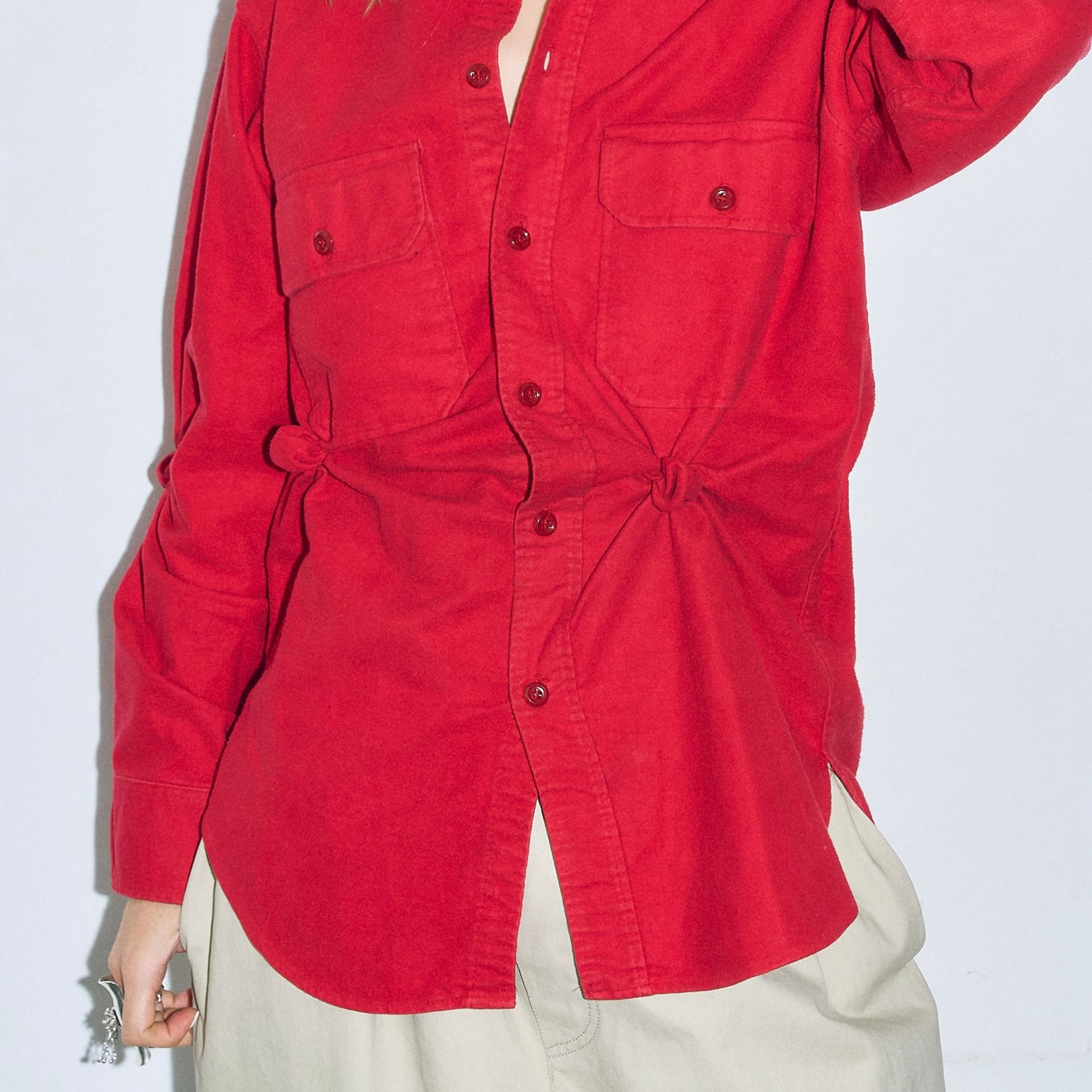 無骨な印象のワークシャツをベースに、 やわらかなバランスに整えたデザイン。控えめな佇まいに仕上げています。