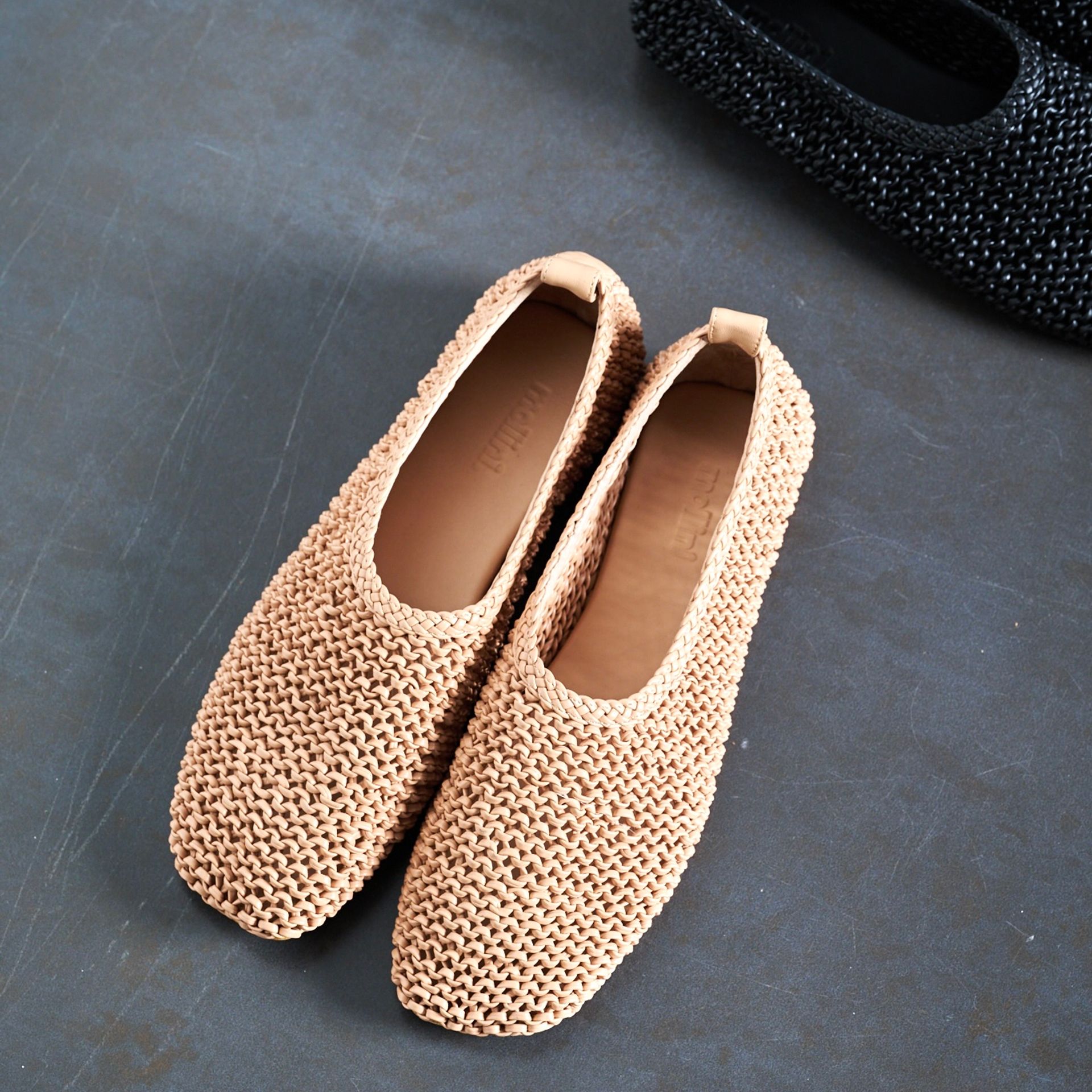 伸縮性のあるゆったりとしたニット風フラットシューズ。
