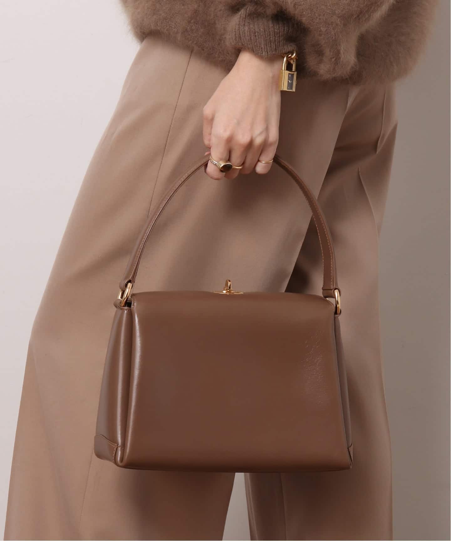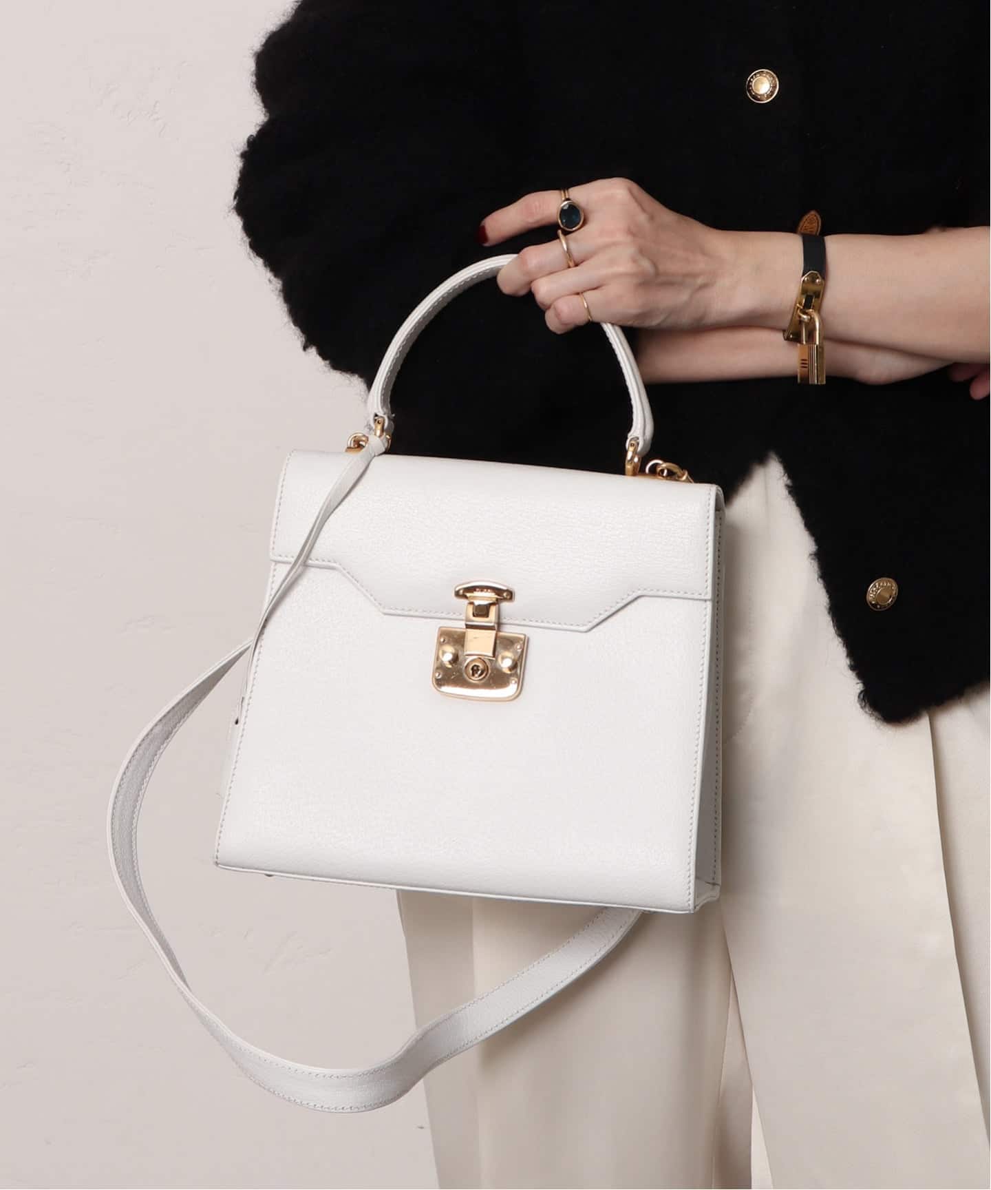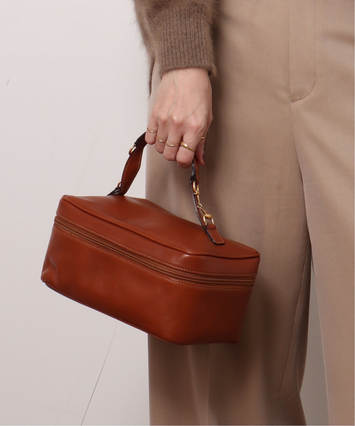 バニティバッグのハンドルに施されたホースビット金具が、控えめながらエレガントな雰囲気に。