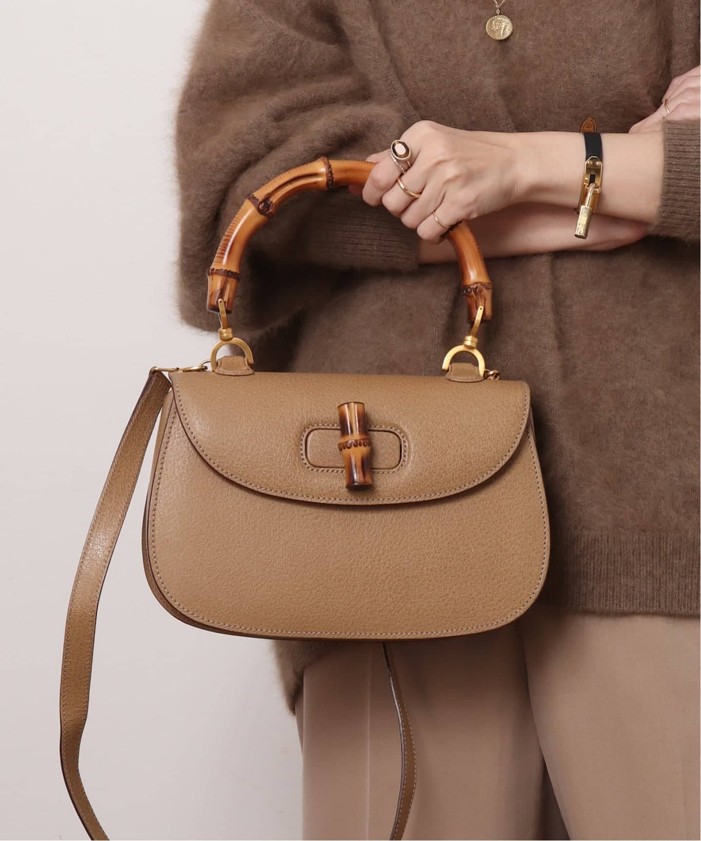1947年に誕生したバンブーをハンドルや留め具に用いた、グッチを代表するシグネチャーバッグ。