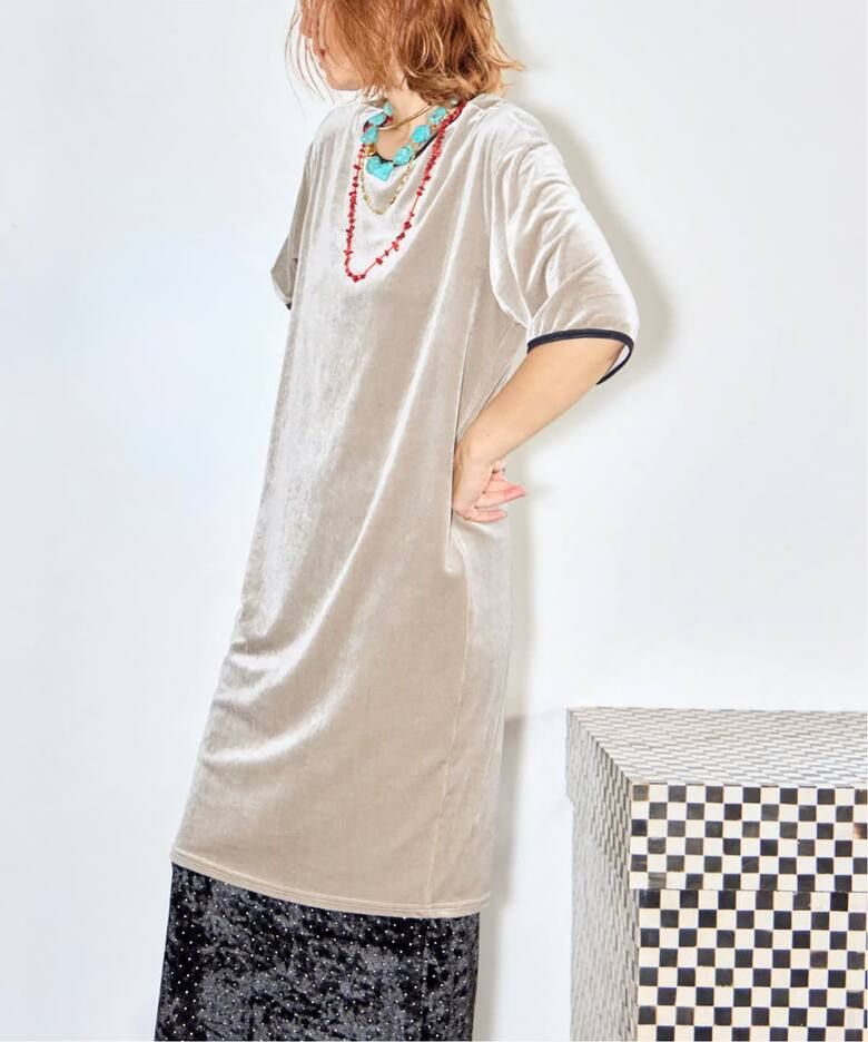 半袖でベロア、ひざ丈のワンピースは全てにおいて新鮮!おしゃれ!1枚でもパンツとのレイヤードでも。