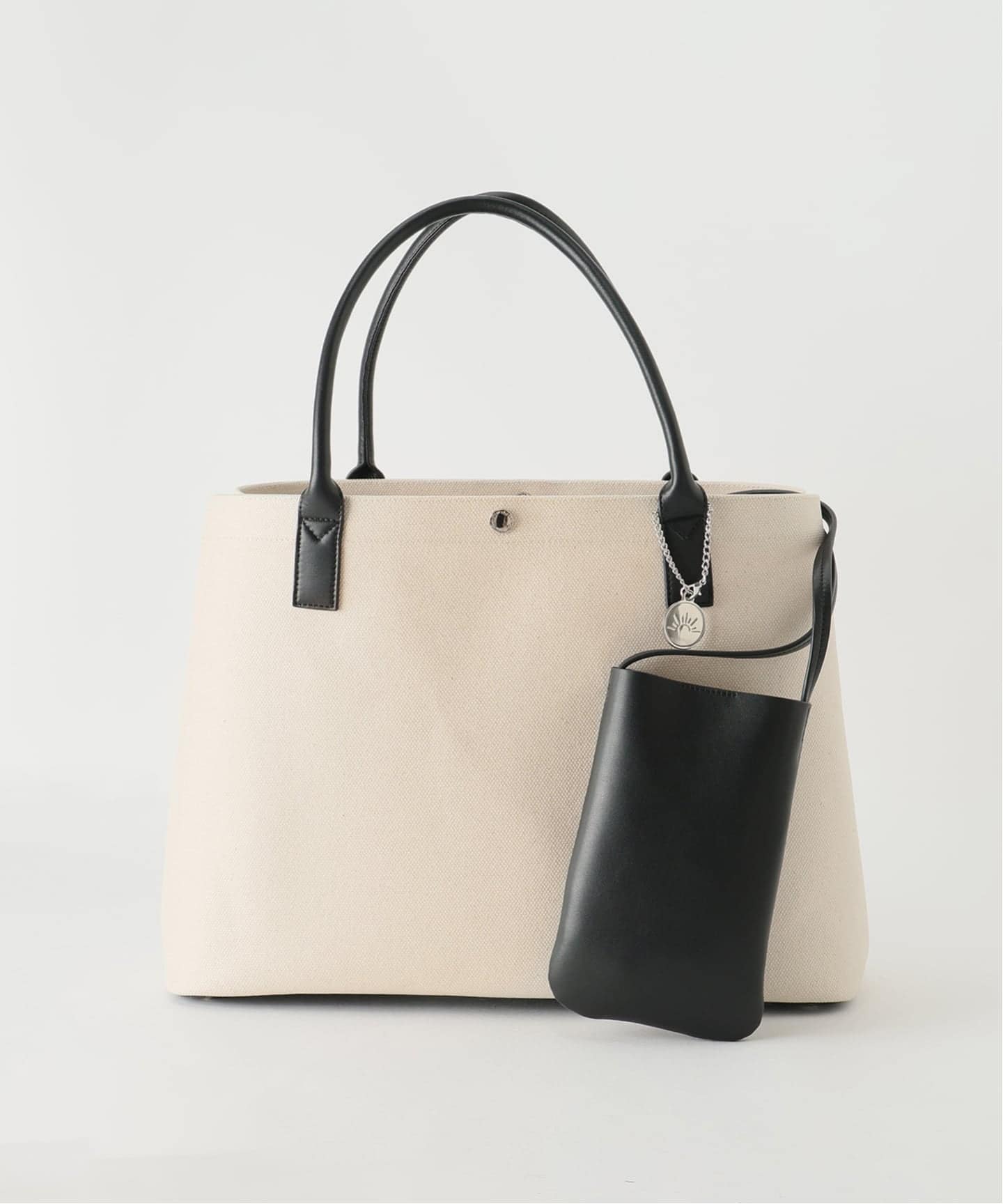 互助会員(※番組リスナーの呼称)にはたまらない、ロゴイラスト入りのチャーム付き。底鋲で自立する設計も美しく、持つ人の所作まできれいに見せてくれるバッグです。