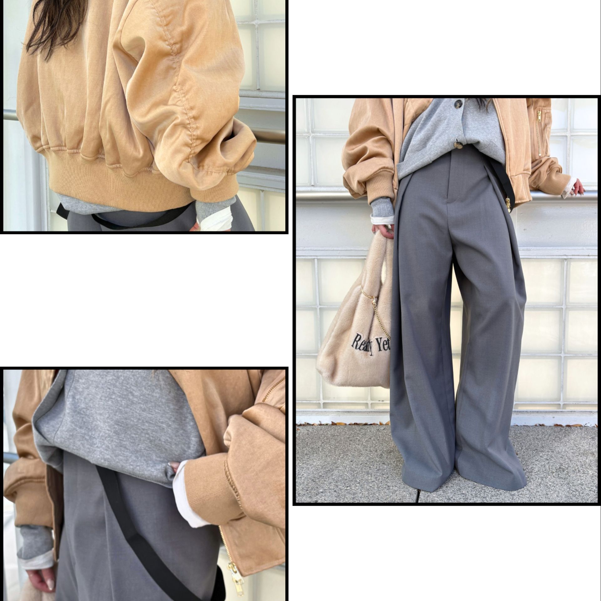 ハイウエスト×ベルトディテールが腰回りをうまくカバーしながら脚を長く見せてくれます。