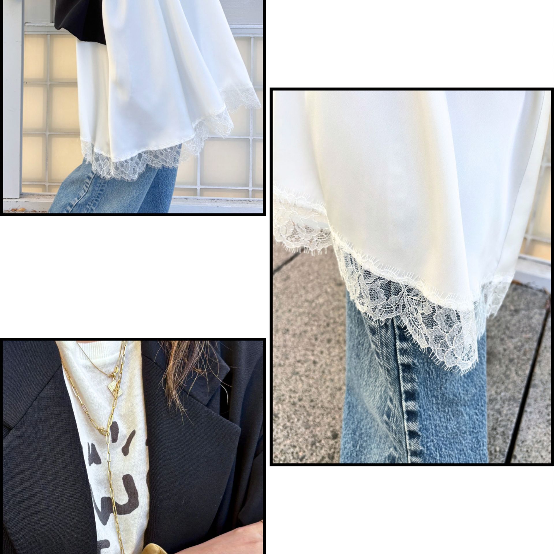 ▼スタンダードなジャケットをレースアイテムでアップデート