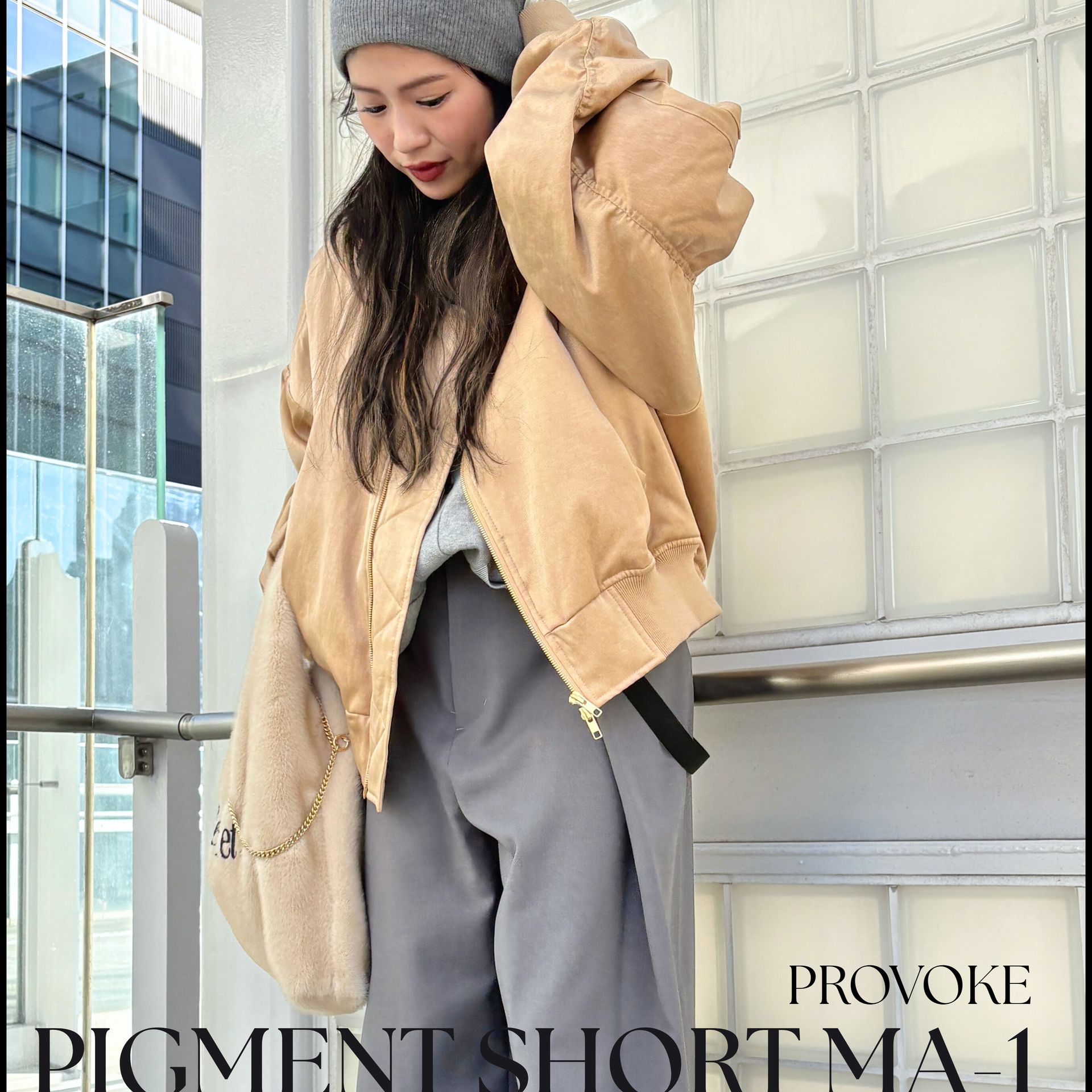 淡いニュートラルカラーが目を惹く、PROVOKEのピグメントショートMA-1。