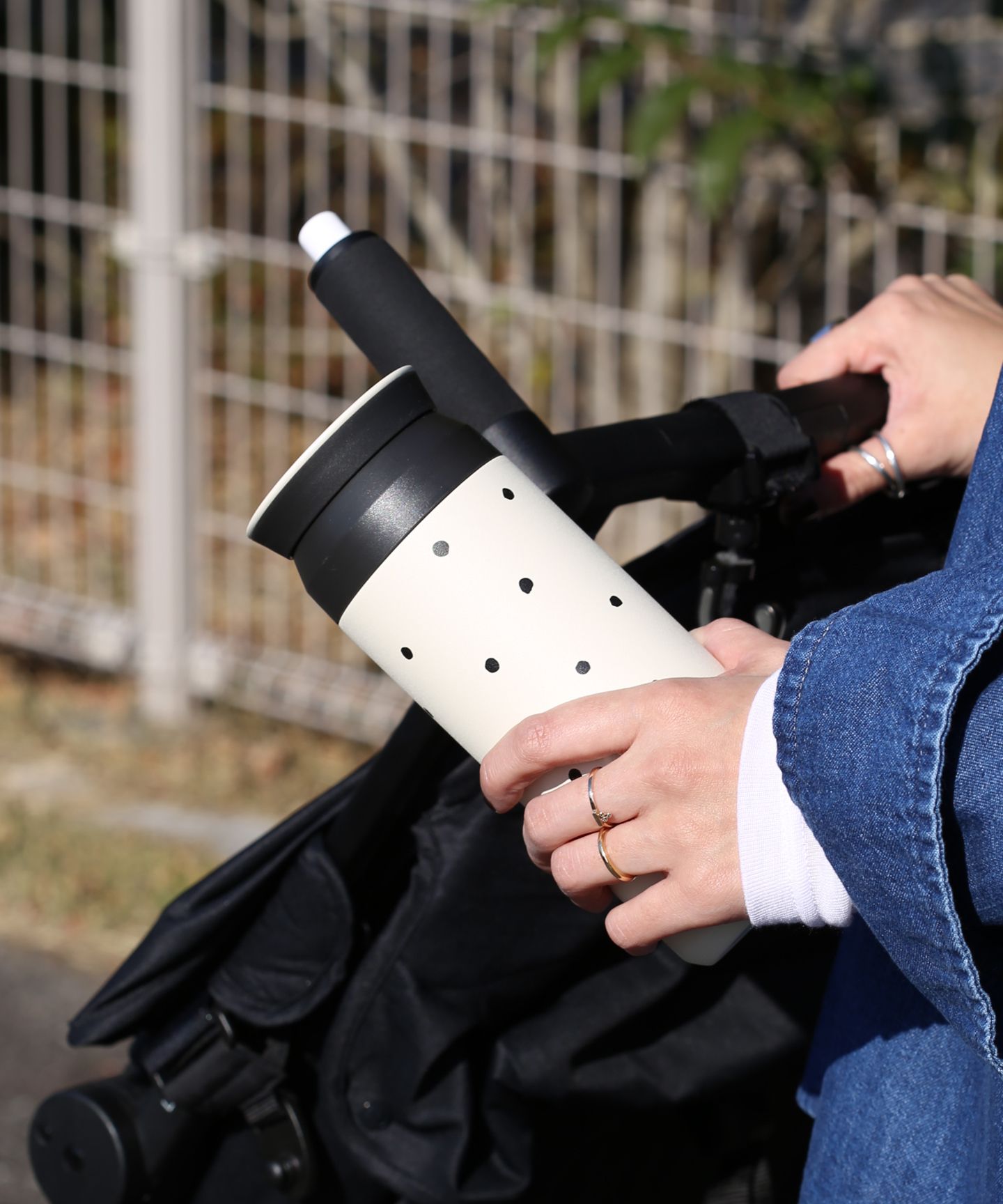 飲み口が広くて、こぼしにくく飲みやすい形状も魅力です。専用のストラップを合わせれば持ち運びやすくお出かけにも便利。