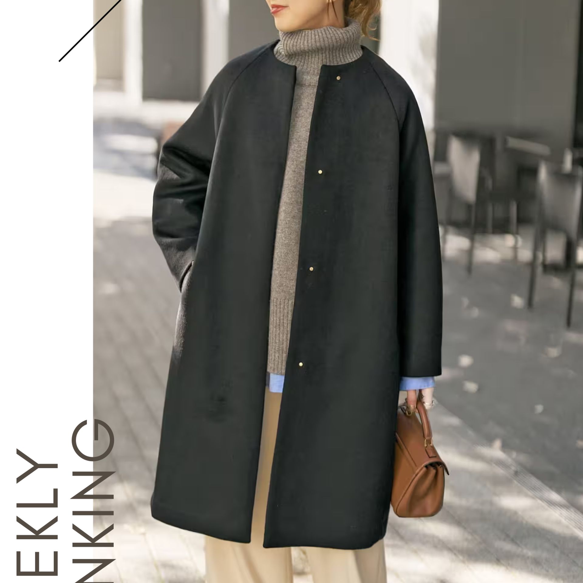 軽やかさと上質感をあわせ持つ、洗練されたノーカラーコート。