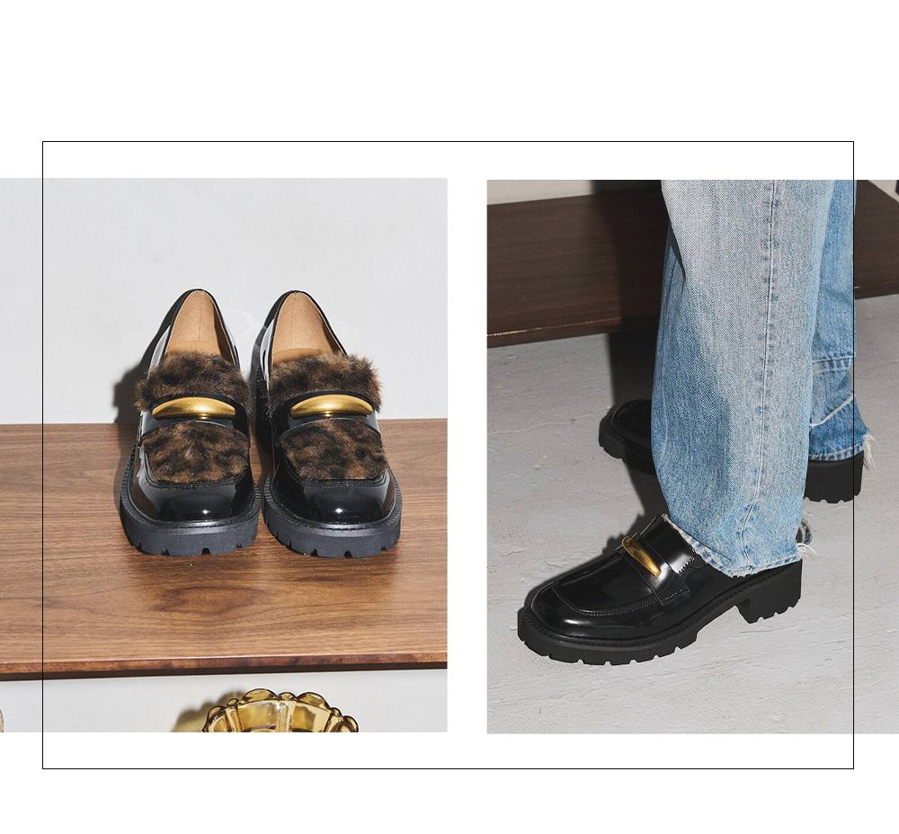 オブジェの様なメタルモチーフがアクセントのアツゾコローファー。