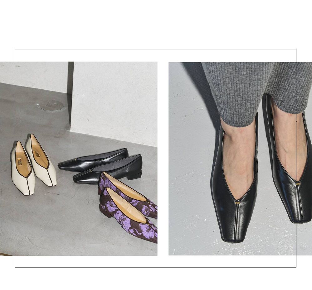 GRISE2.5cmナロースクエアカラーブロックフラット