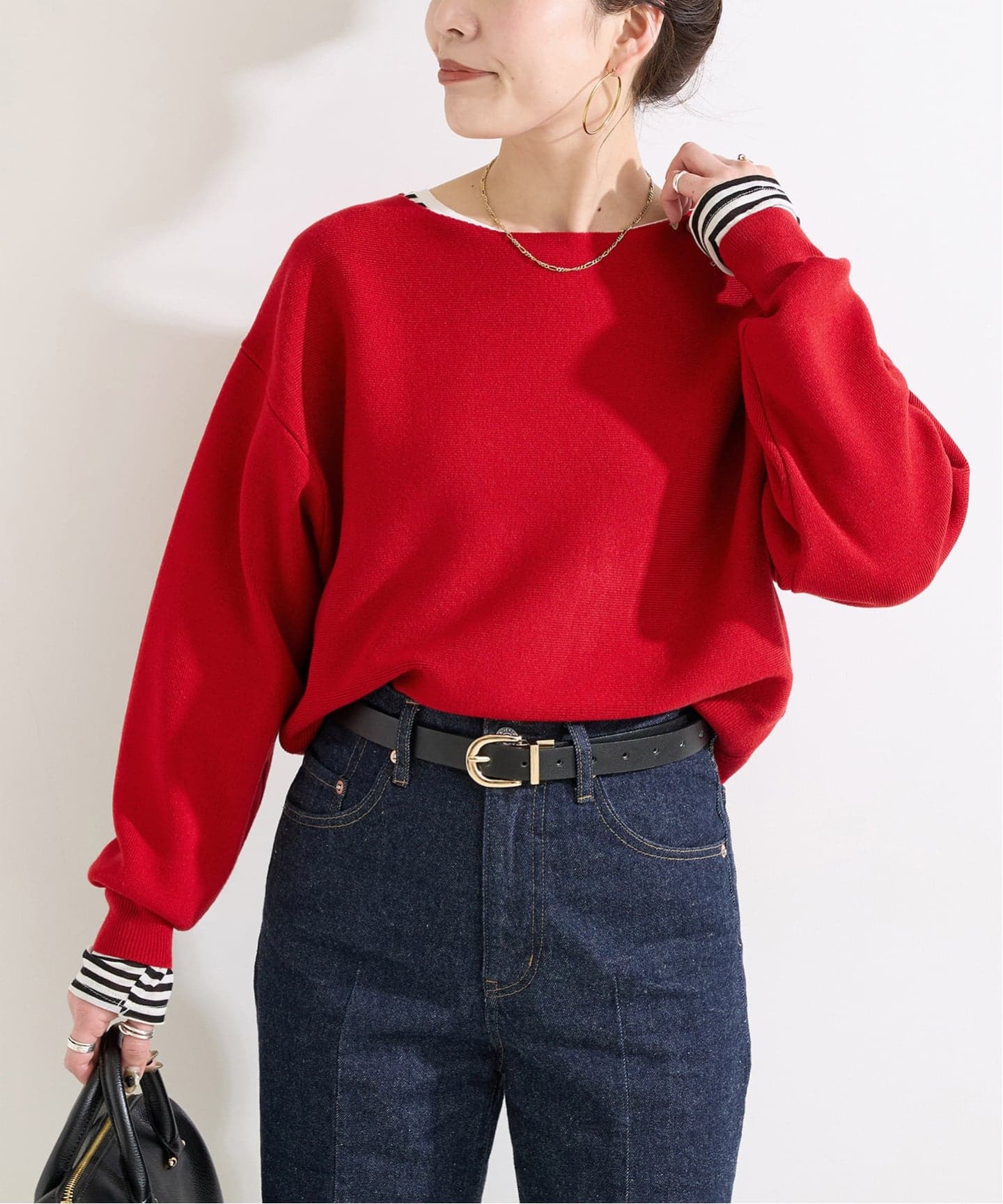 アウターの中にも着込めるほどよく肉感のあるニットです。