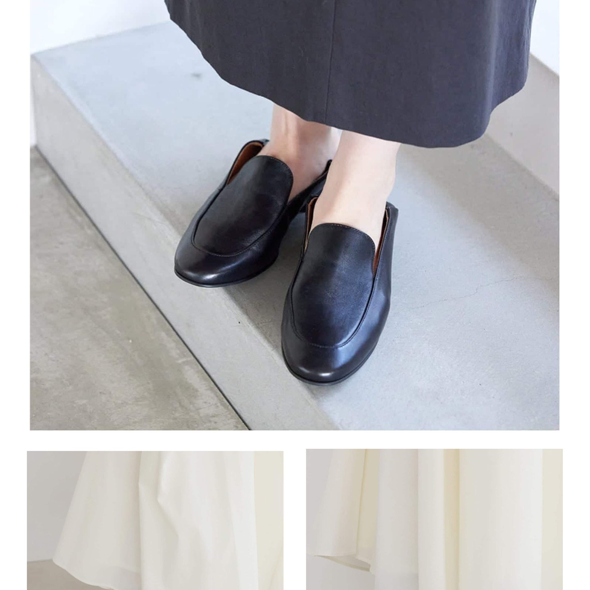 「普段23.5か24です。甲高で少し幅広の足なので、24にしようか迷いましたが、23.5で丁度よかったです。足に馴染んできたらソックスを合わせてもサイズ感は問題ないと思います。このお値段でこのクオリティーはお買得だと思います。買って正解。ブラックも欲しくなりました。」