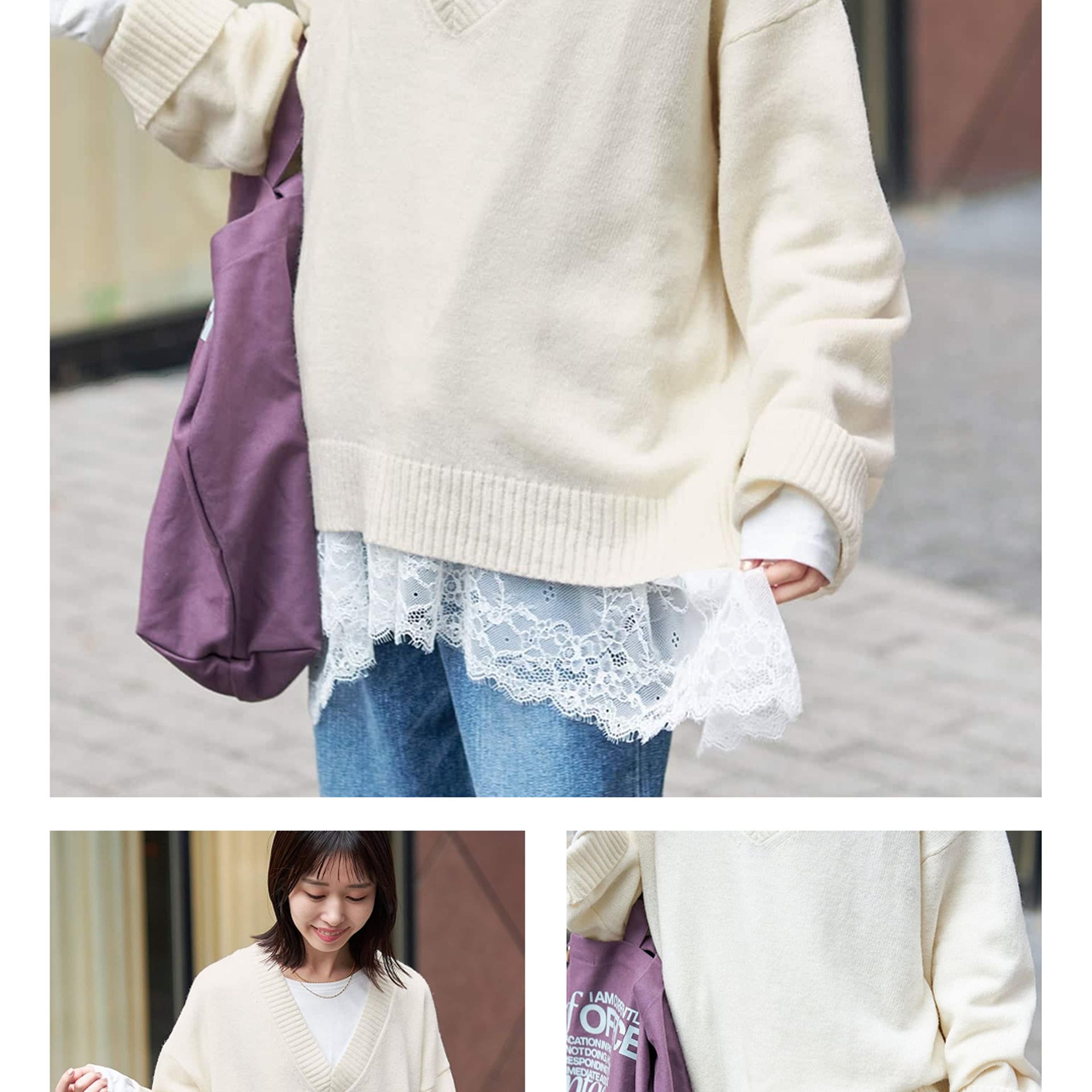 「手持ちのアイテムにレイヤードするだけで、コーディネートが新鮮になる印象です。レースがアシンメトリーになっていてテクニックがなくても、こなれ感が出るので嬉しいです!」
