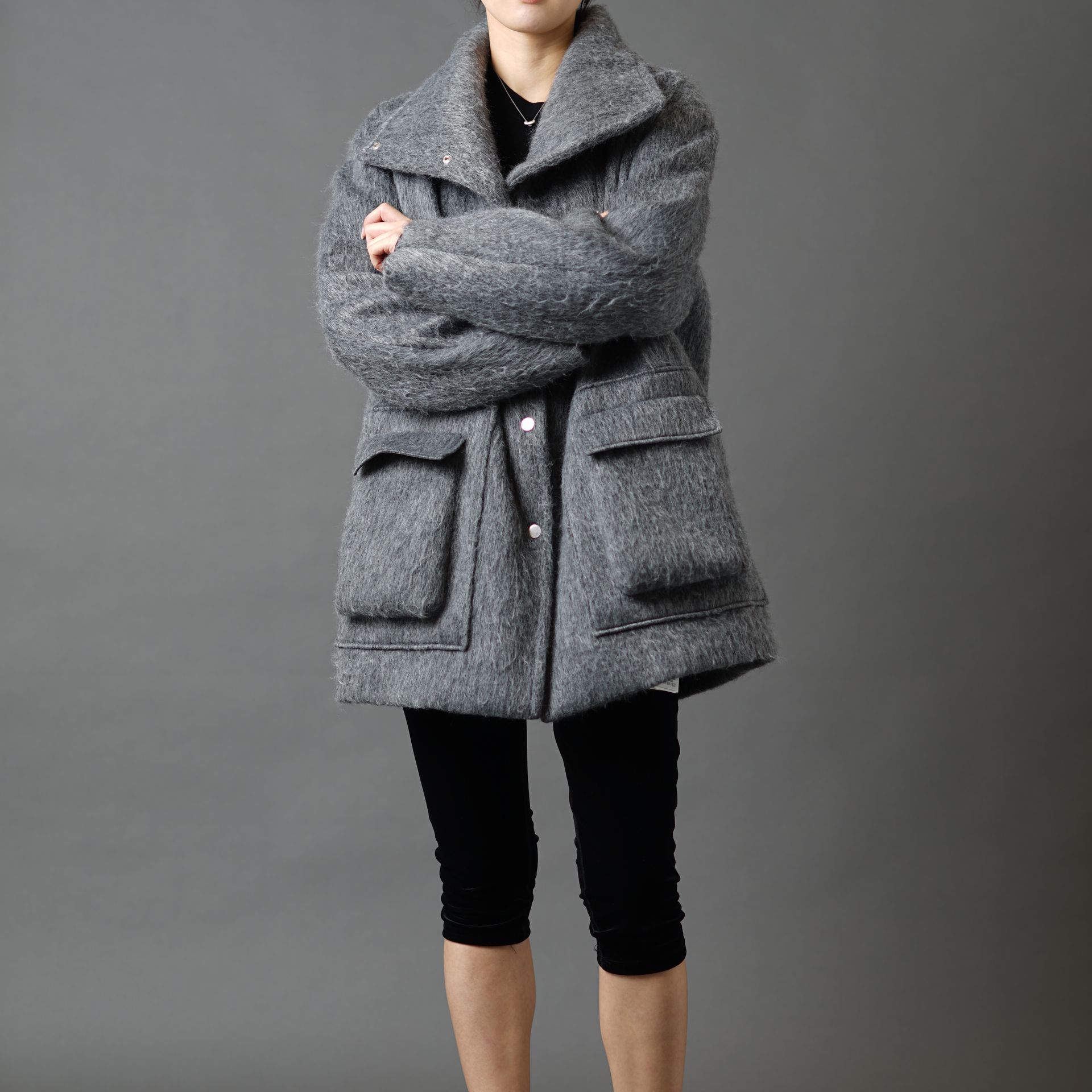 全体的にモノトーンでまとめ、足元をコンパクトにすることでバランスの取れた都会的でモードな印象に仕上げています。