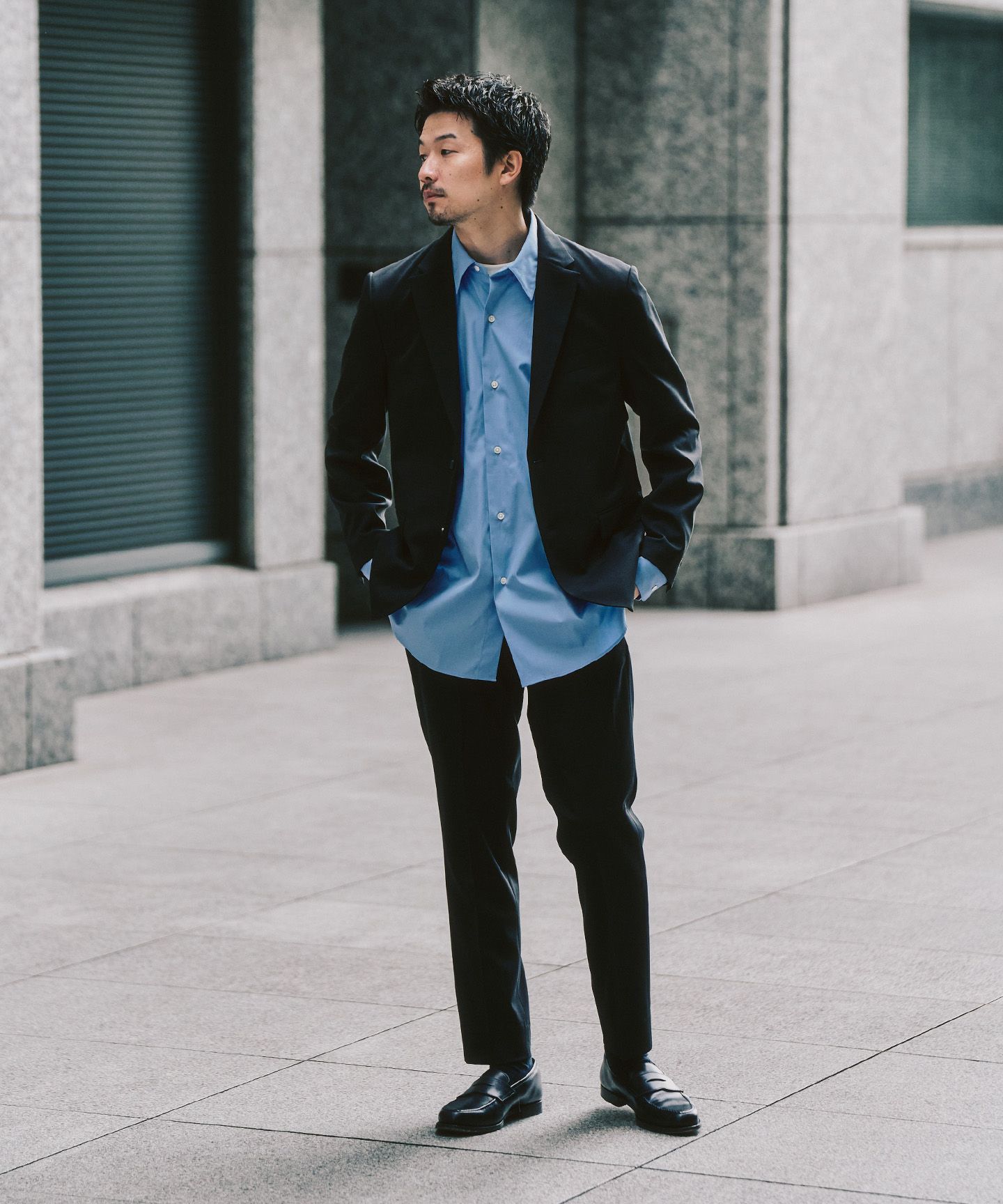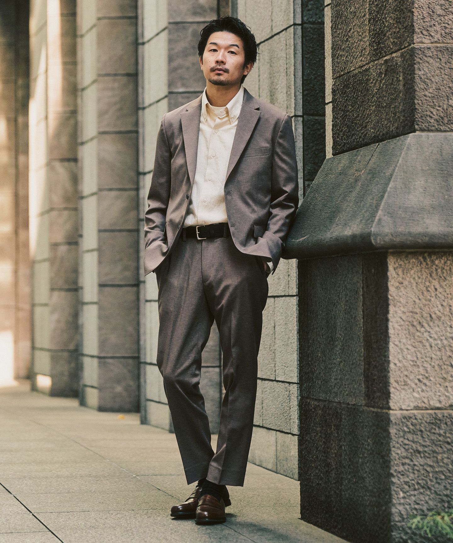 気合を入れすぎず、でもだらしなくも見えない。オンにもオフにも自然に寄り添うセットアップは、これからの毎日を支えてくれる存在です。