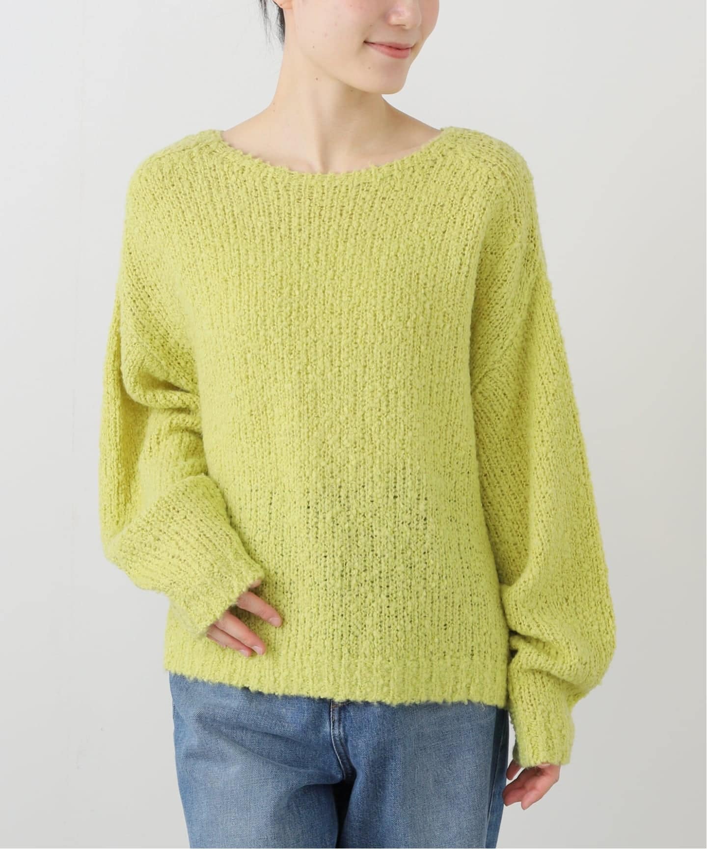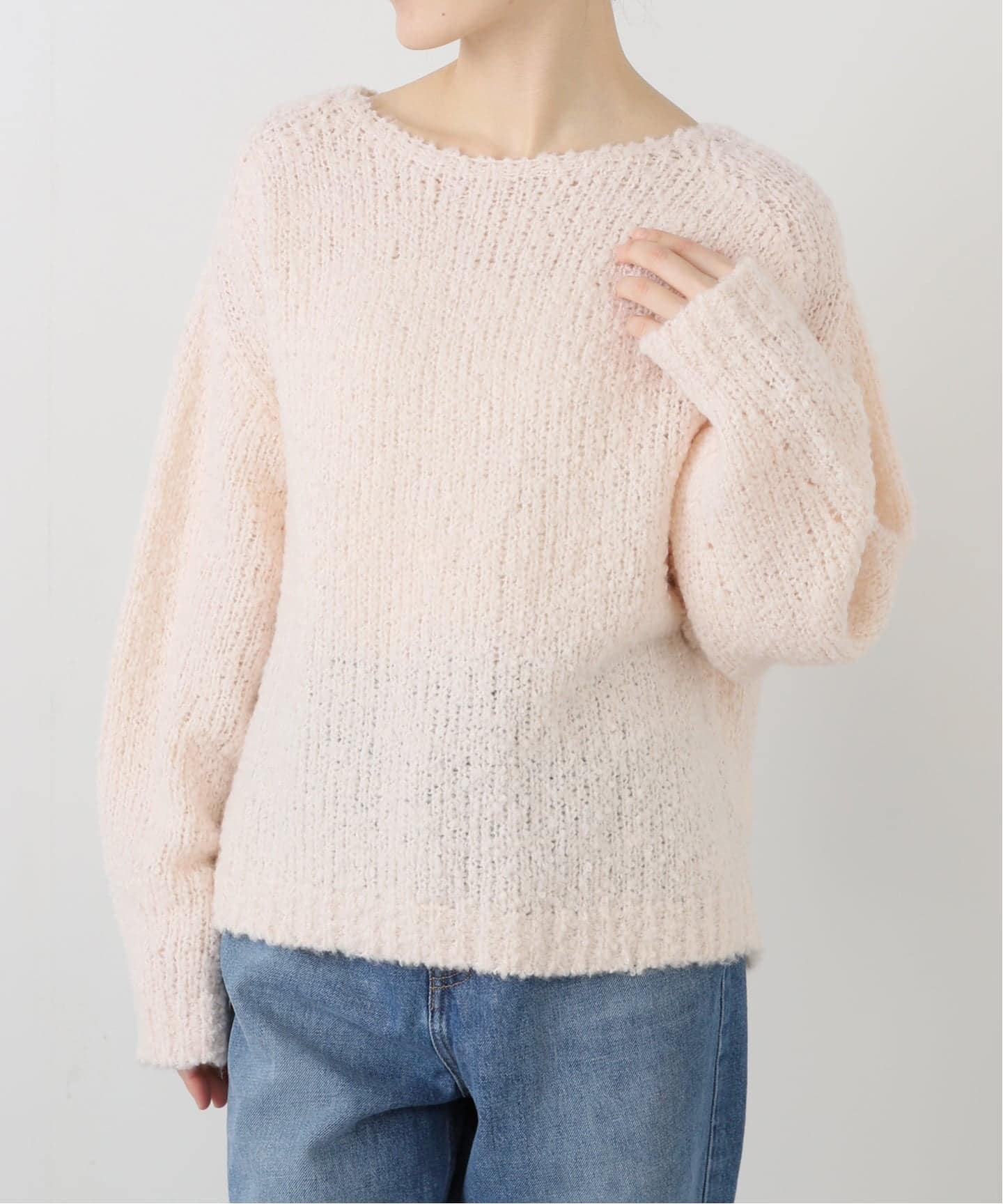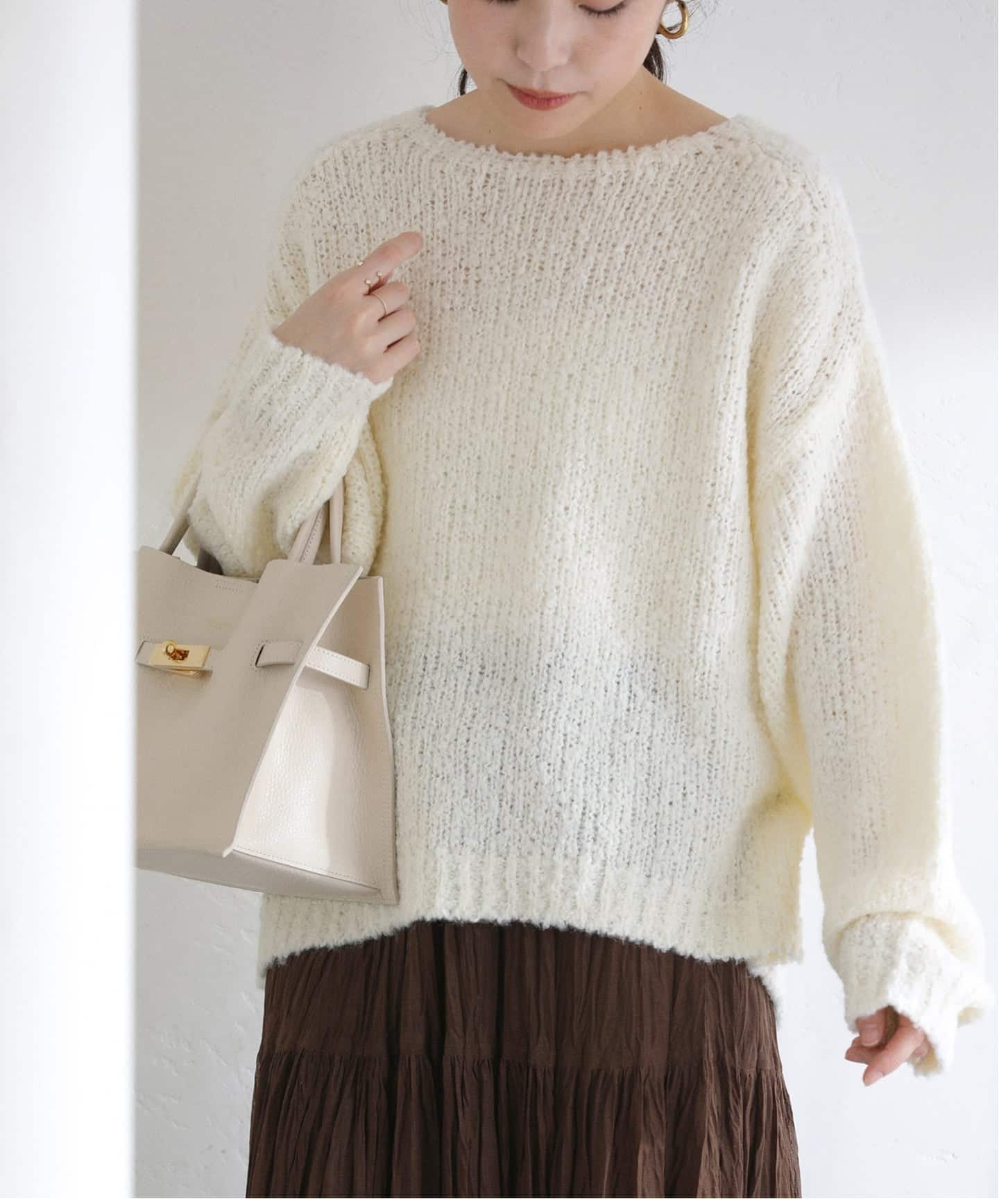ブークレニットのふわふわとした風合いが可愛く、シンプルなのに着映えるニット。
