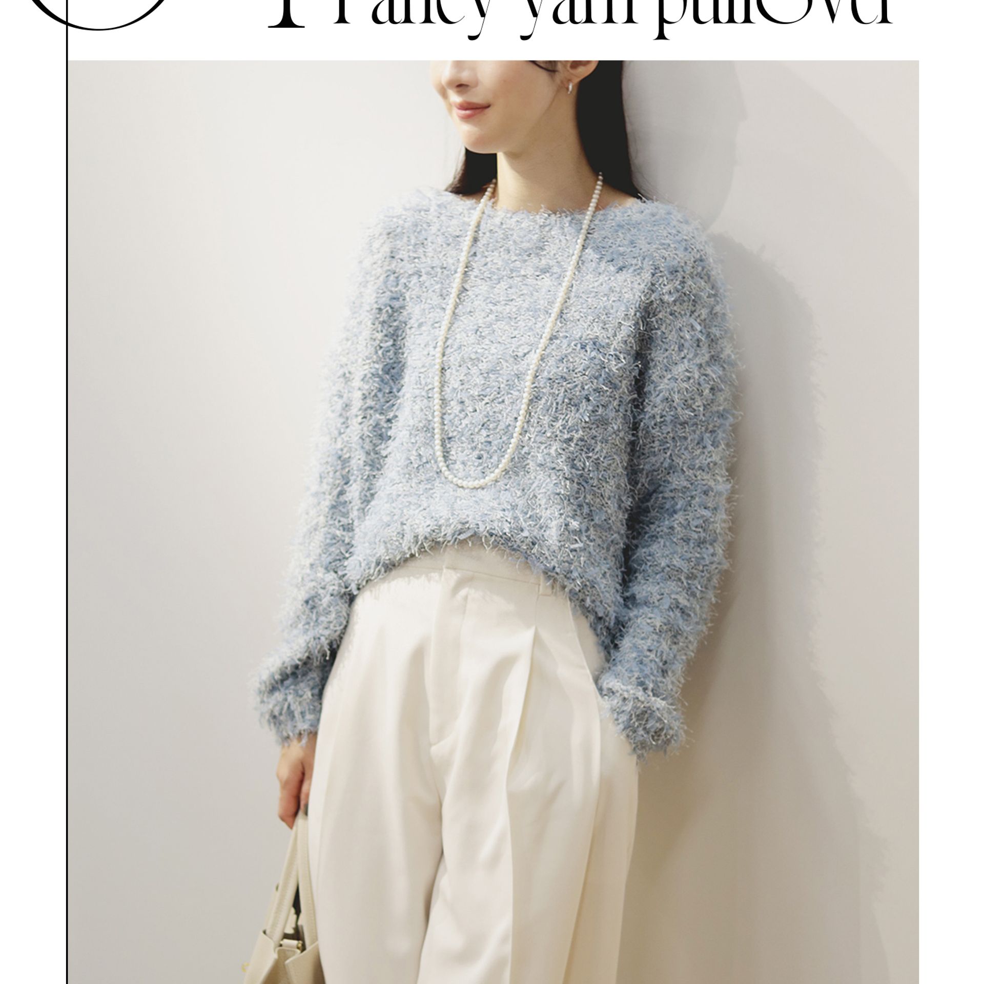 ふんわりとしたファンシーヤーン特有の表情が魅力のニットプルオーバー。