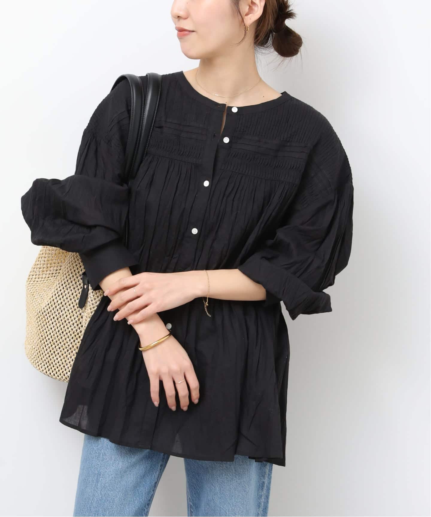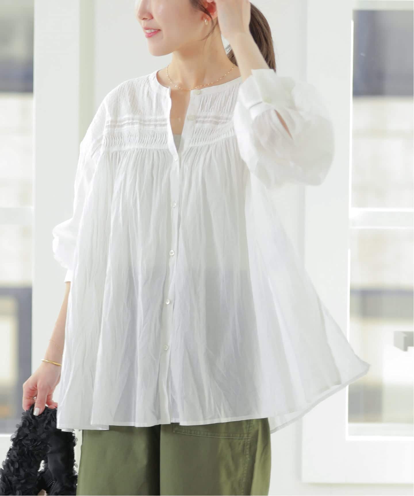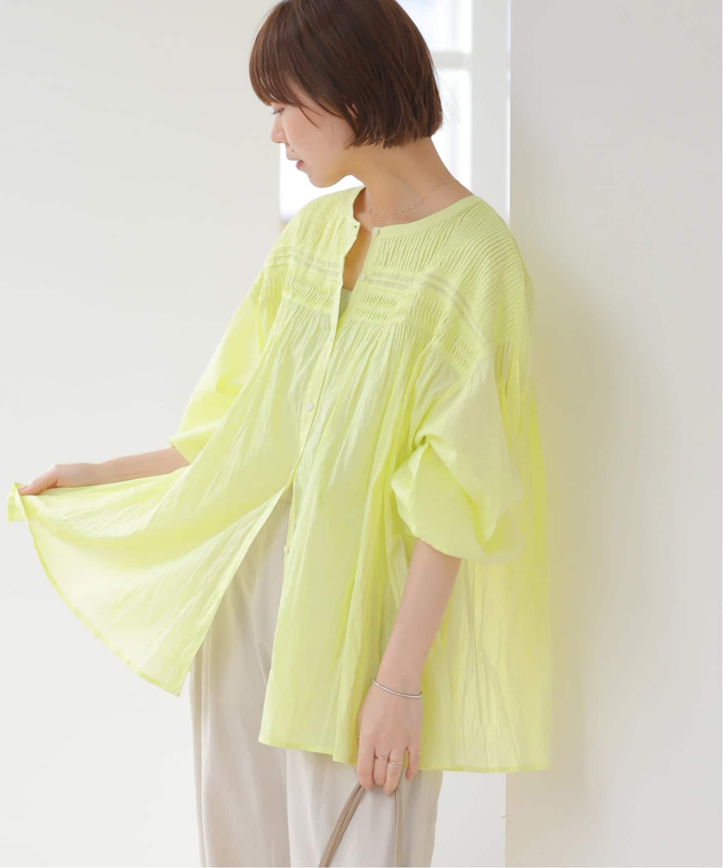 《予約》[26SS新作]コットンボイルクリンクルピンタックブラウス