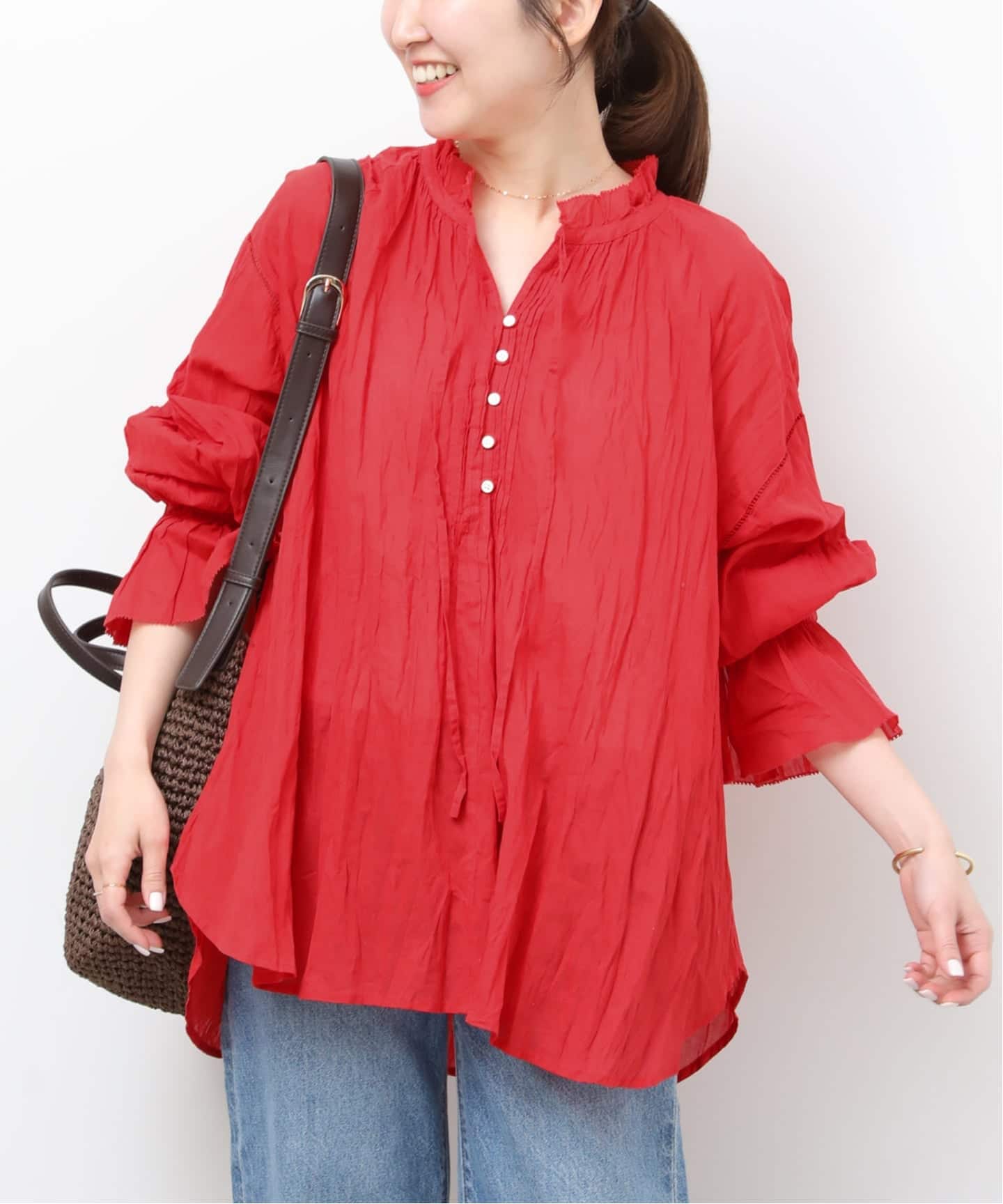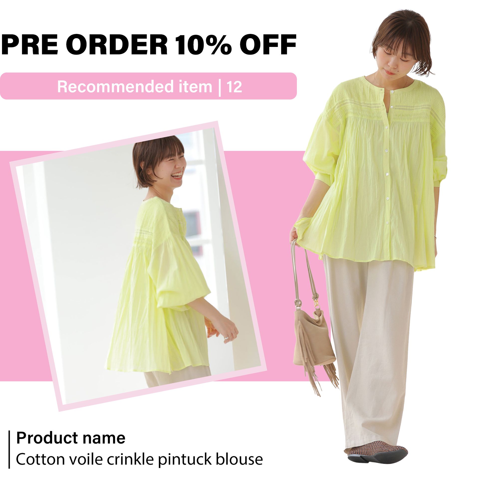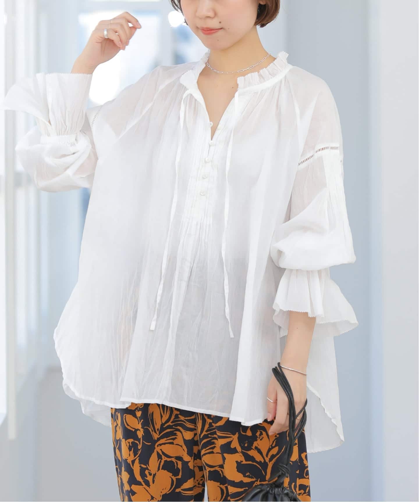 《予約》[26SS新作]コットンボイルクリンクルピンタックブラウス