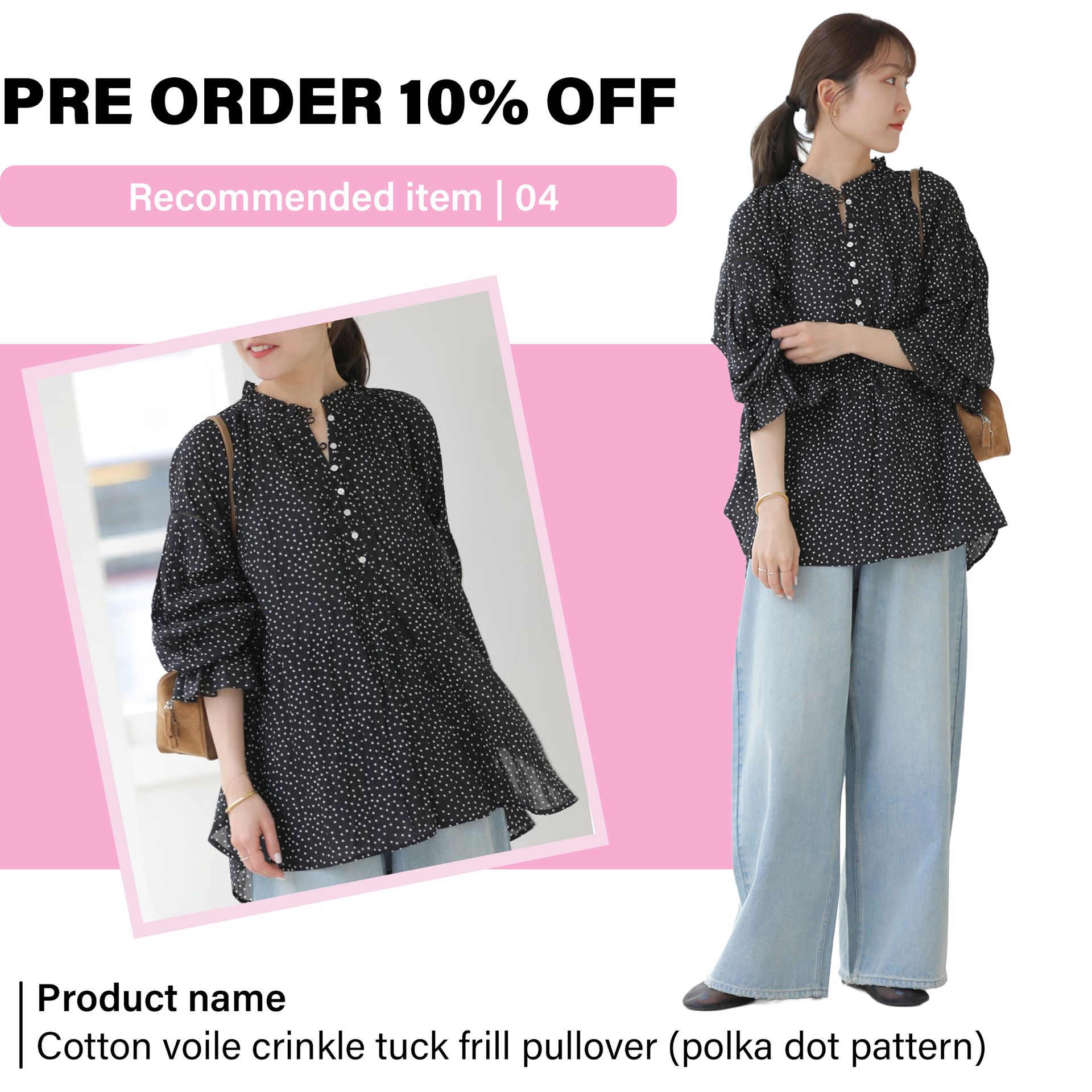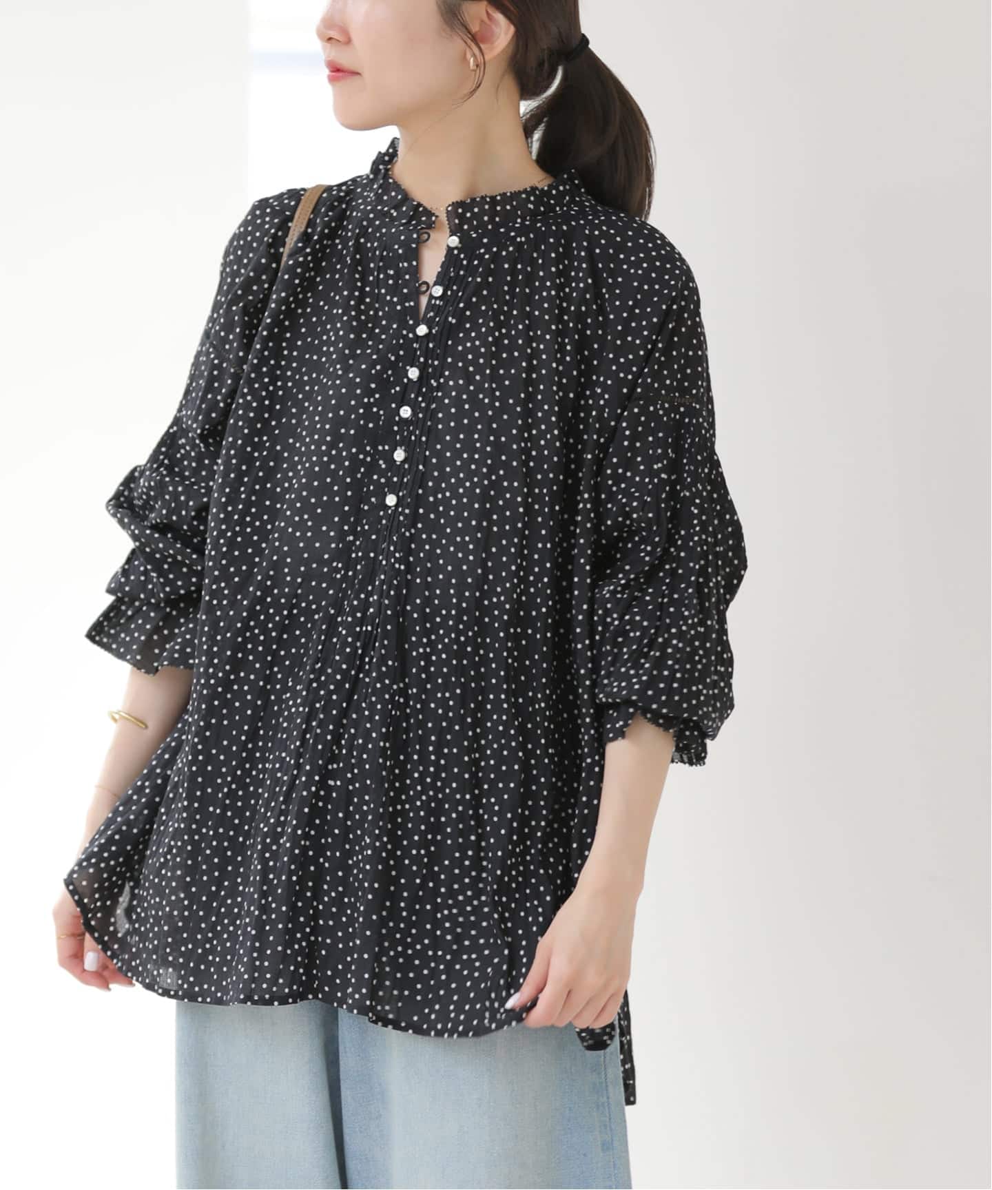 《予約》[26SS新作]コットンボイルクリンクルタックフリルプルオーバー(ドット柄)
