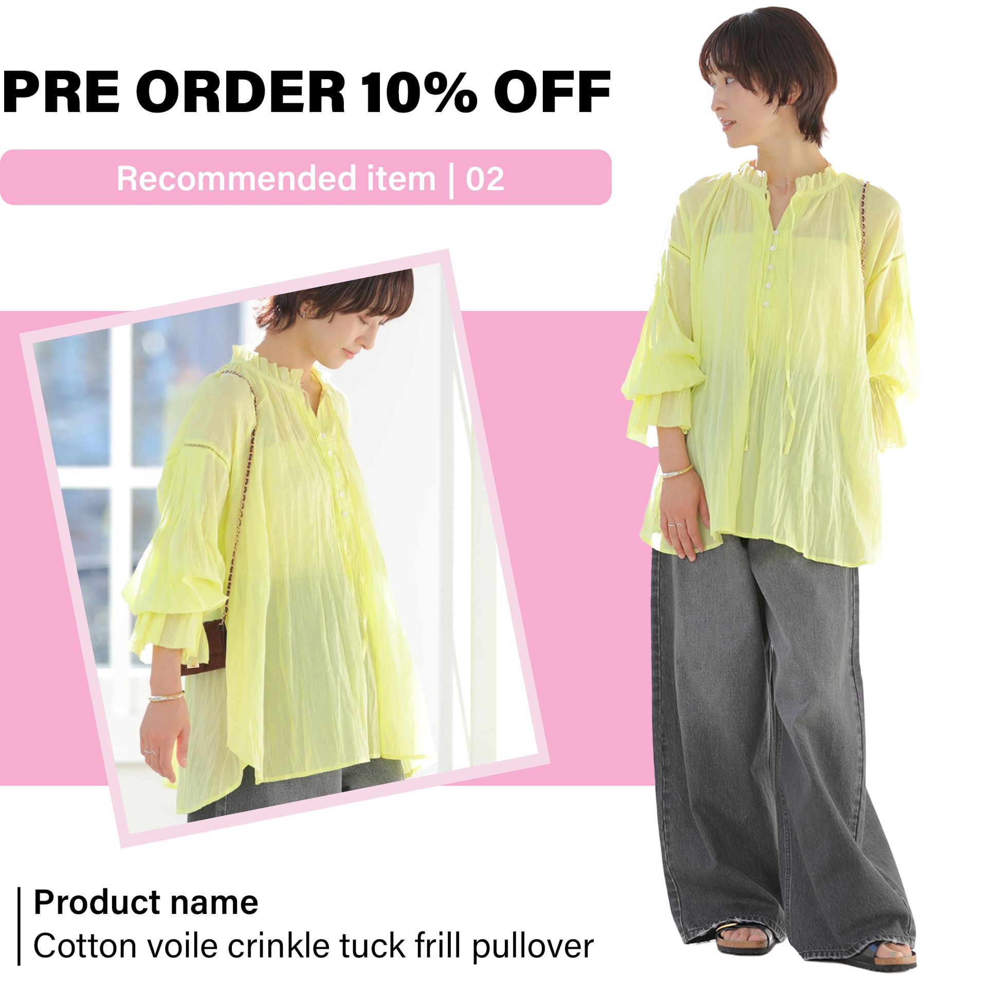 《予約》[26SS新作]コットンボイルクリンクルタックフリルプルオーバー