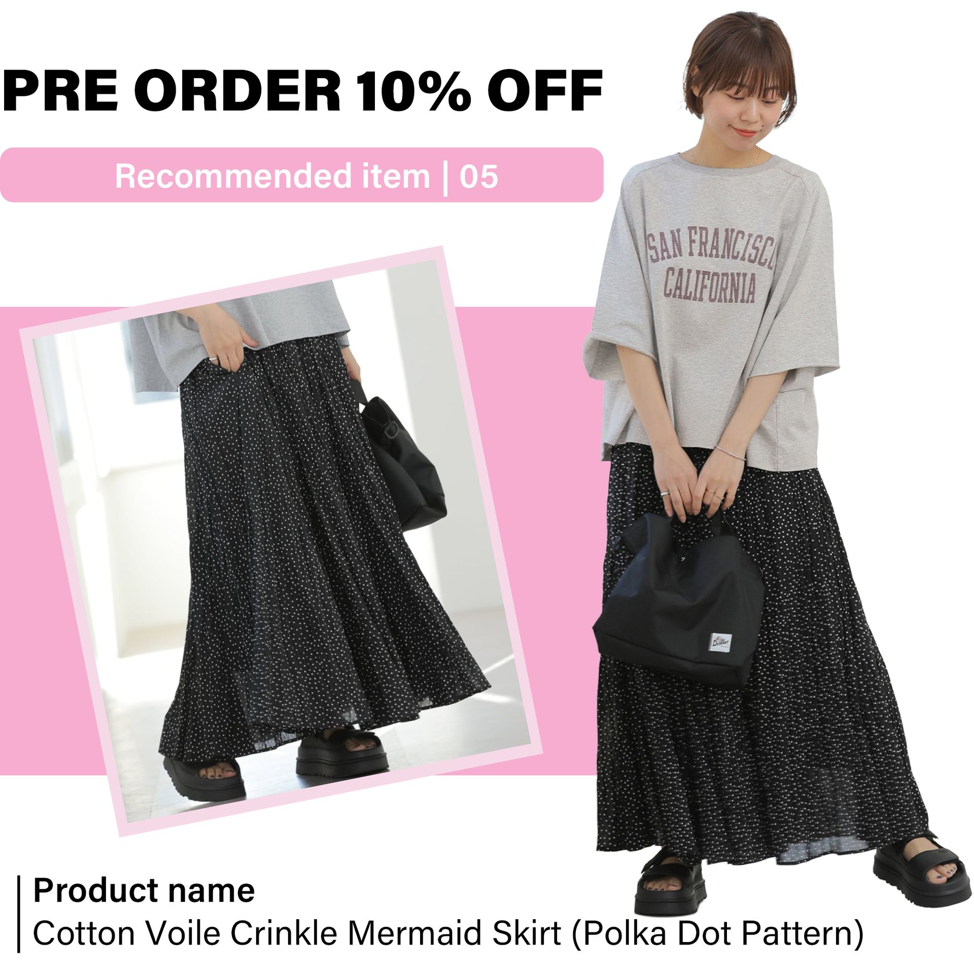 《予約》[26SS新作]コットンボイルクリンクルマーメイドスカート(ドット柄)