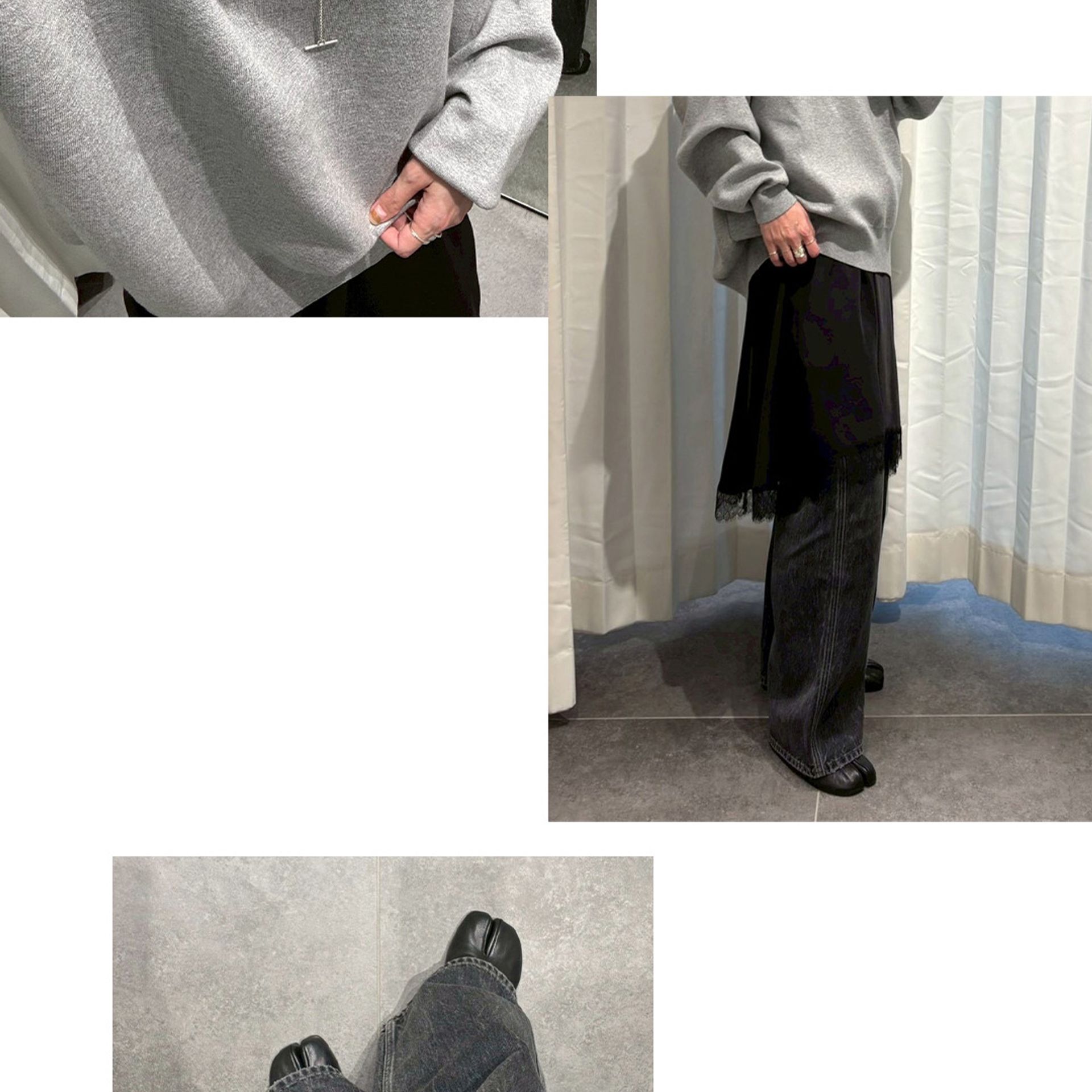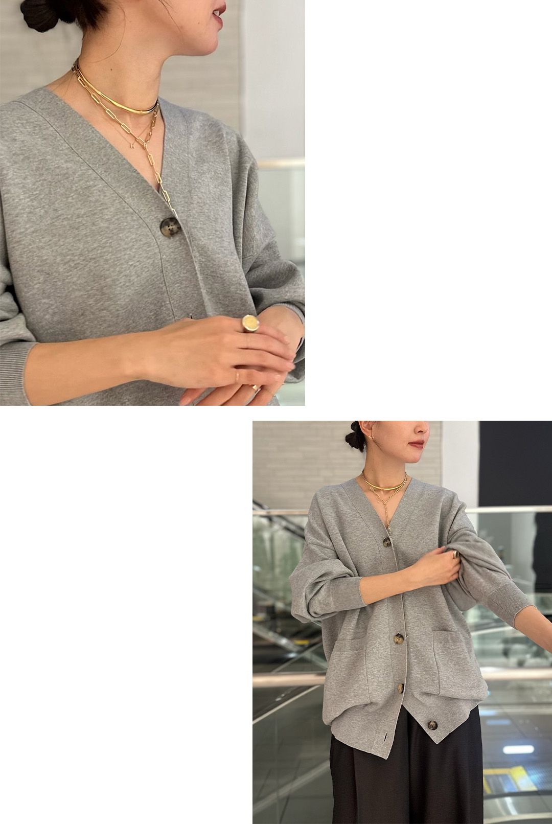 白はどんなテイストにも馴染み、グレーはスタイリングのアクセントに。
