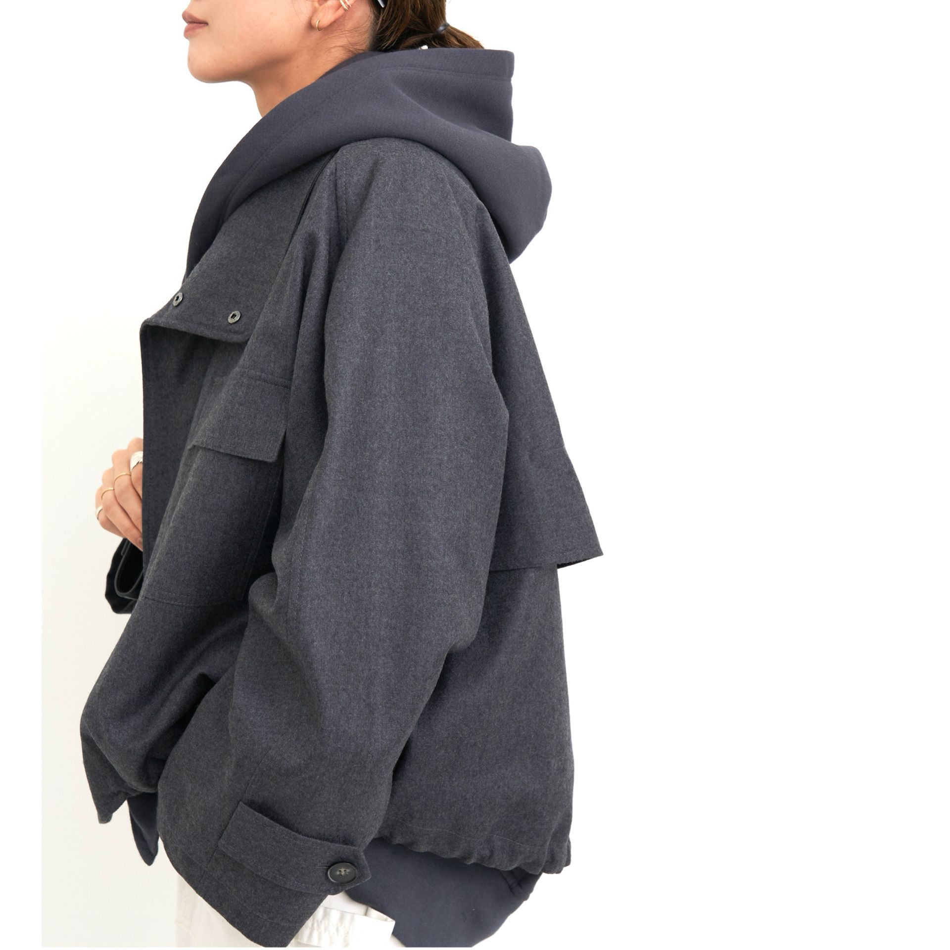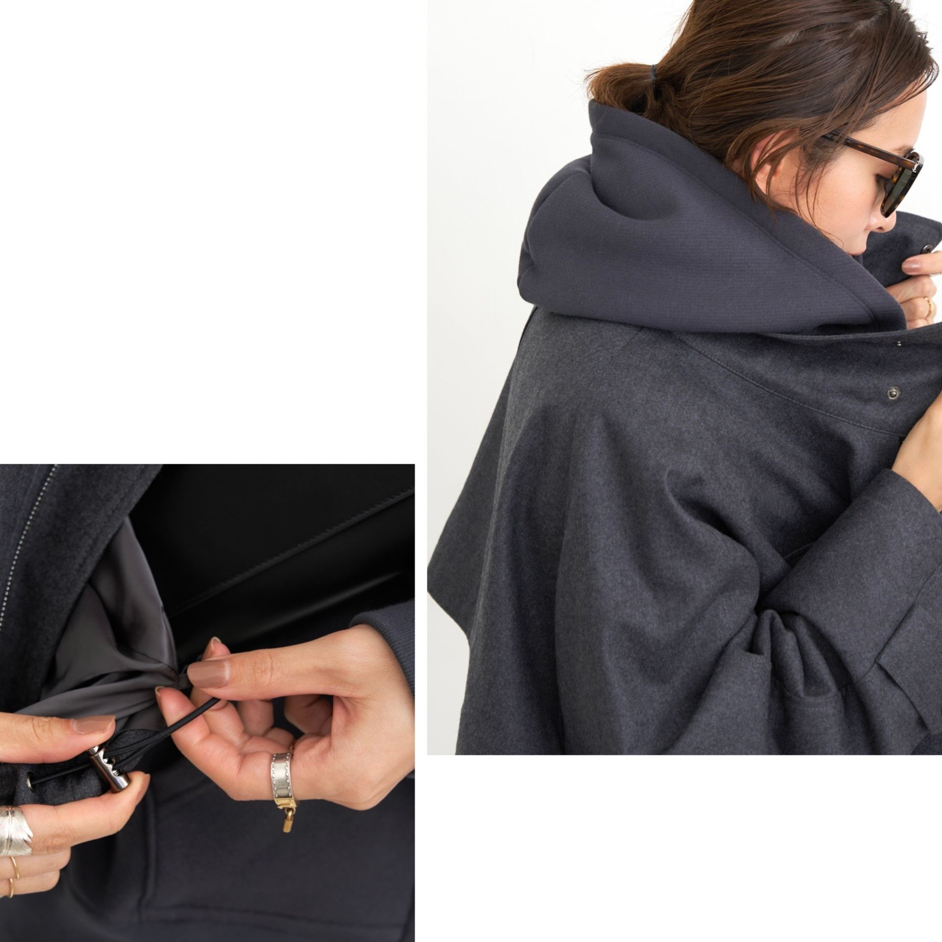 裾にはコードが入っているので着丈の調節も可能。着丈を短くした時にバランスが良い様に袖周りに少しボリュームをつけています。
