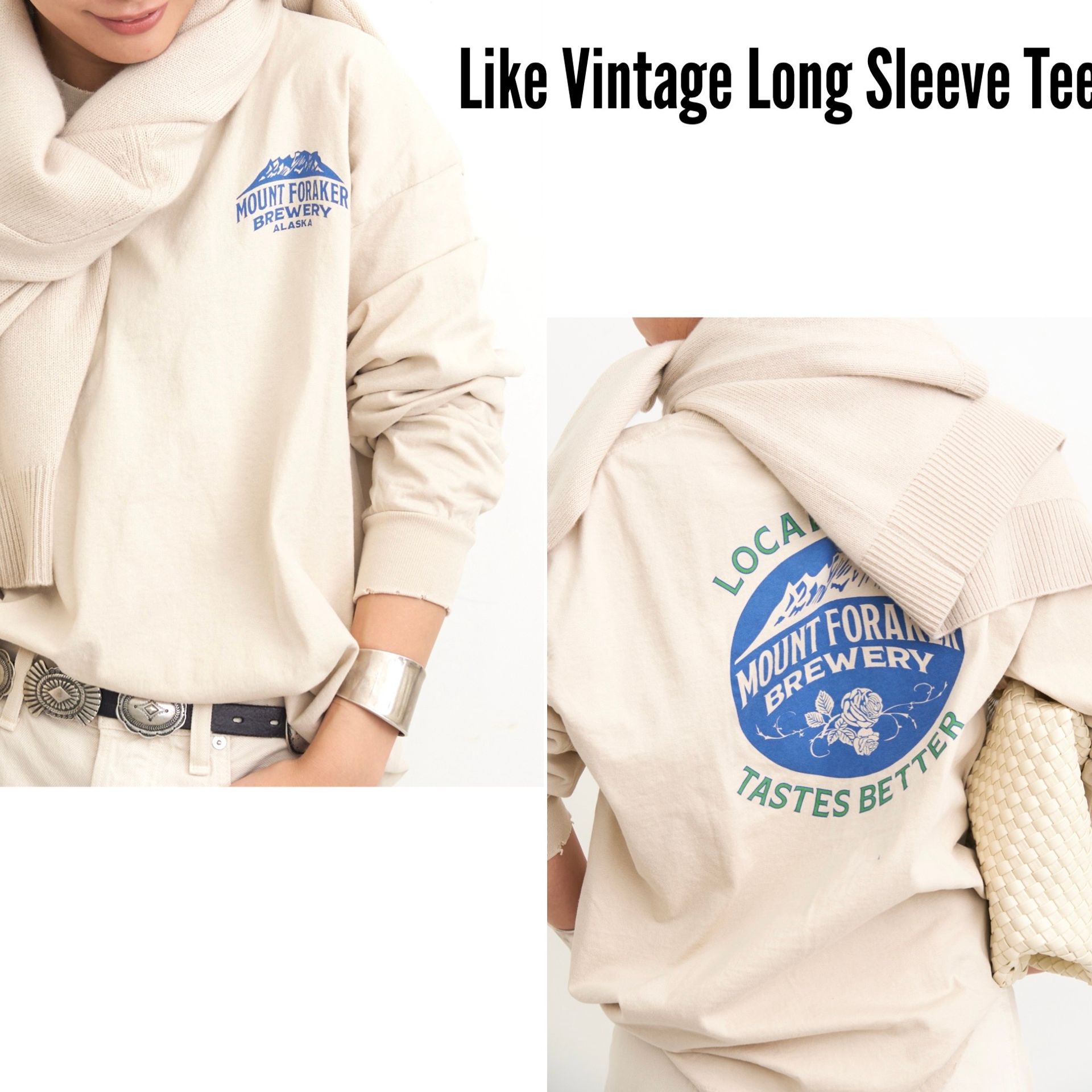 ナチュラルな色褪せ感がかっこいいロングスリーブTシャツ。ボディに合わせたグラフィックは、春らしく軽めの雰囲気に仕上げています。