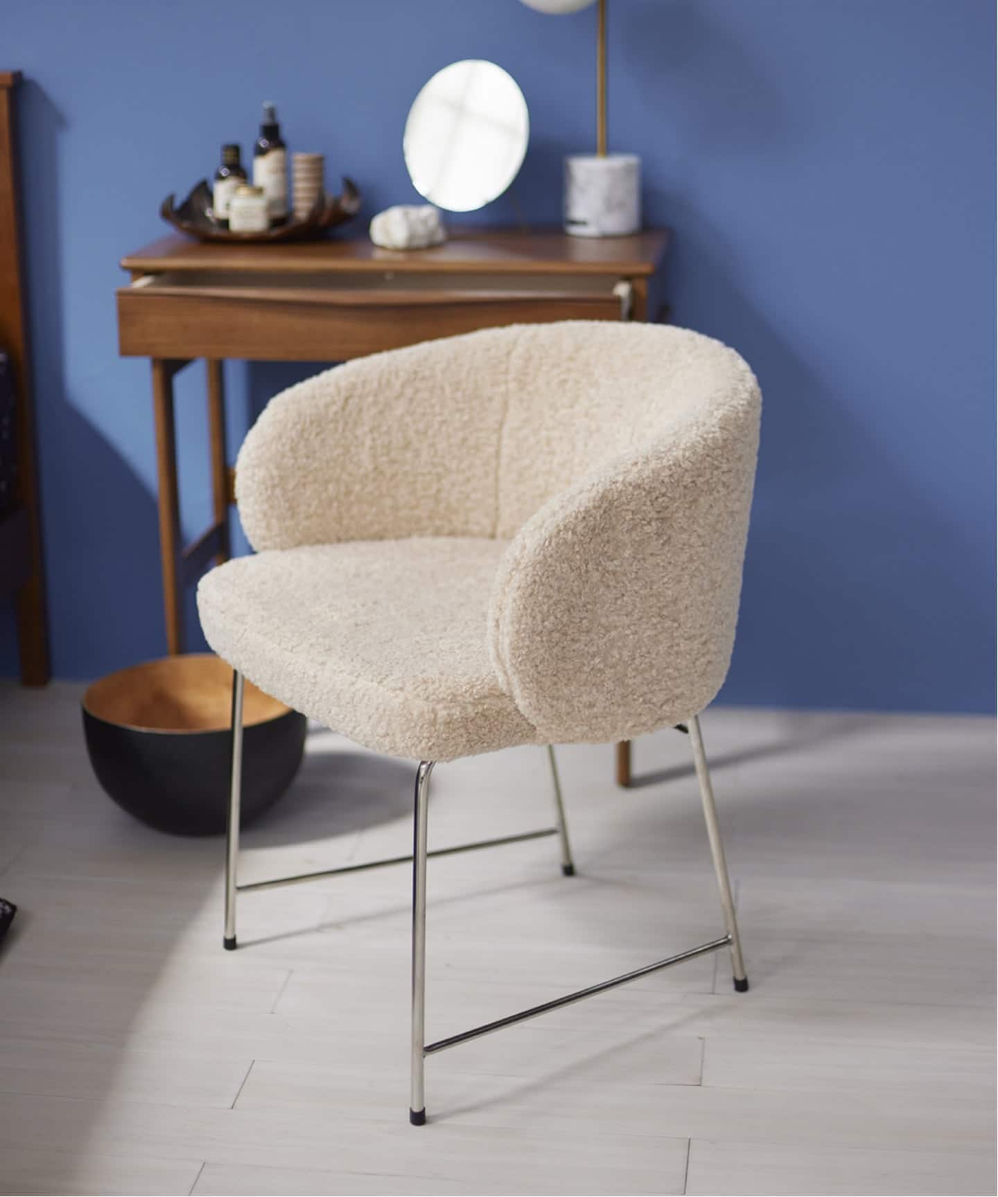 繊細なステンレス脚と、ウール調ファブリックの座面・アームを組み合わせたアームチェア。