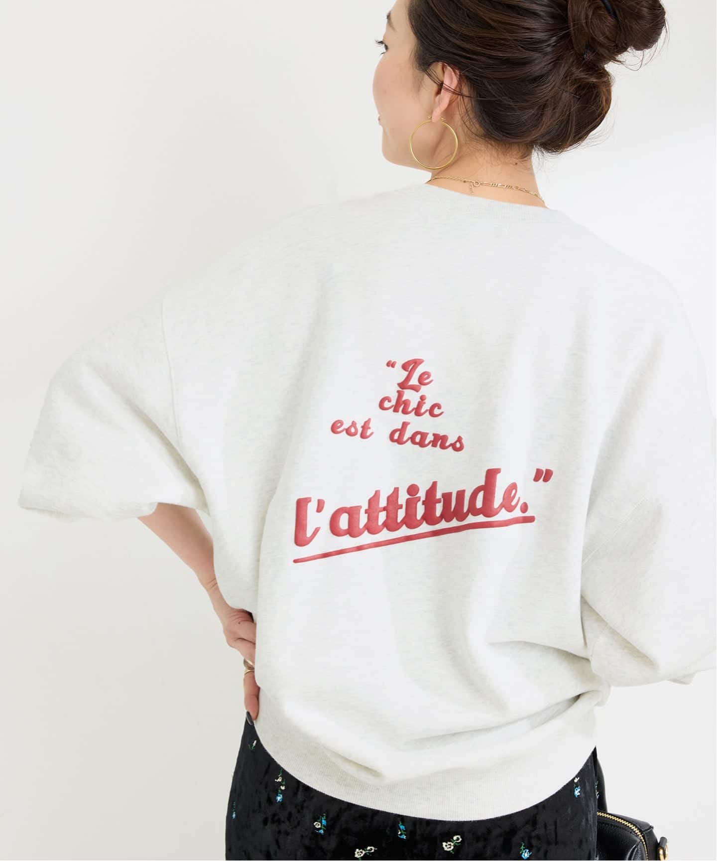 ベーシックな裏毛トレーナーにフロントはシンプルにまとめ、バックスタイルで差がつくデザインに仕上げました。程よい厚みでデイリーに着やすく、デニムやスウェットパンツと合わせればリラックス感のあるカジュアルスタイルになります。