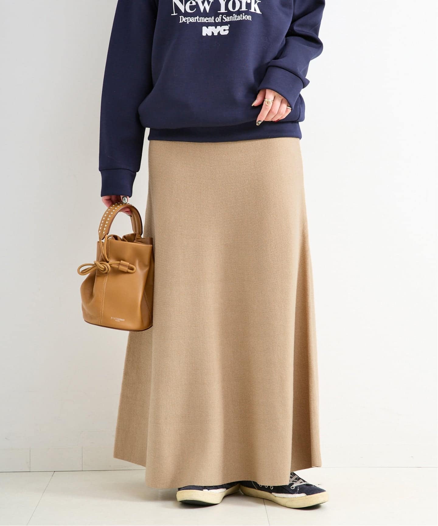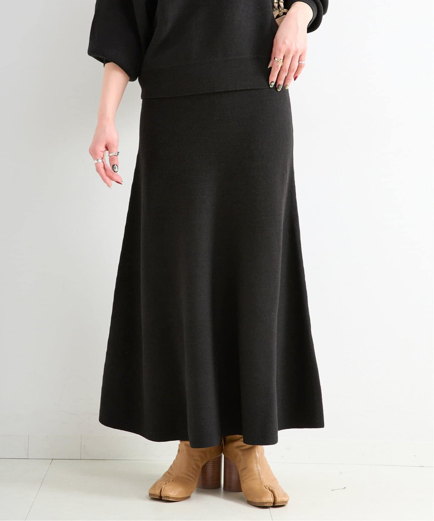 落ち感のある柔らかな質感のニットスカート。