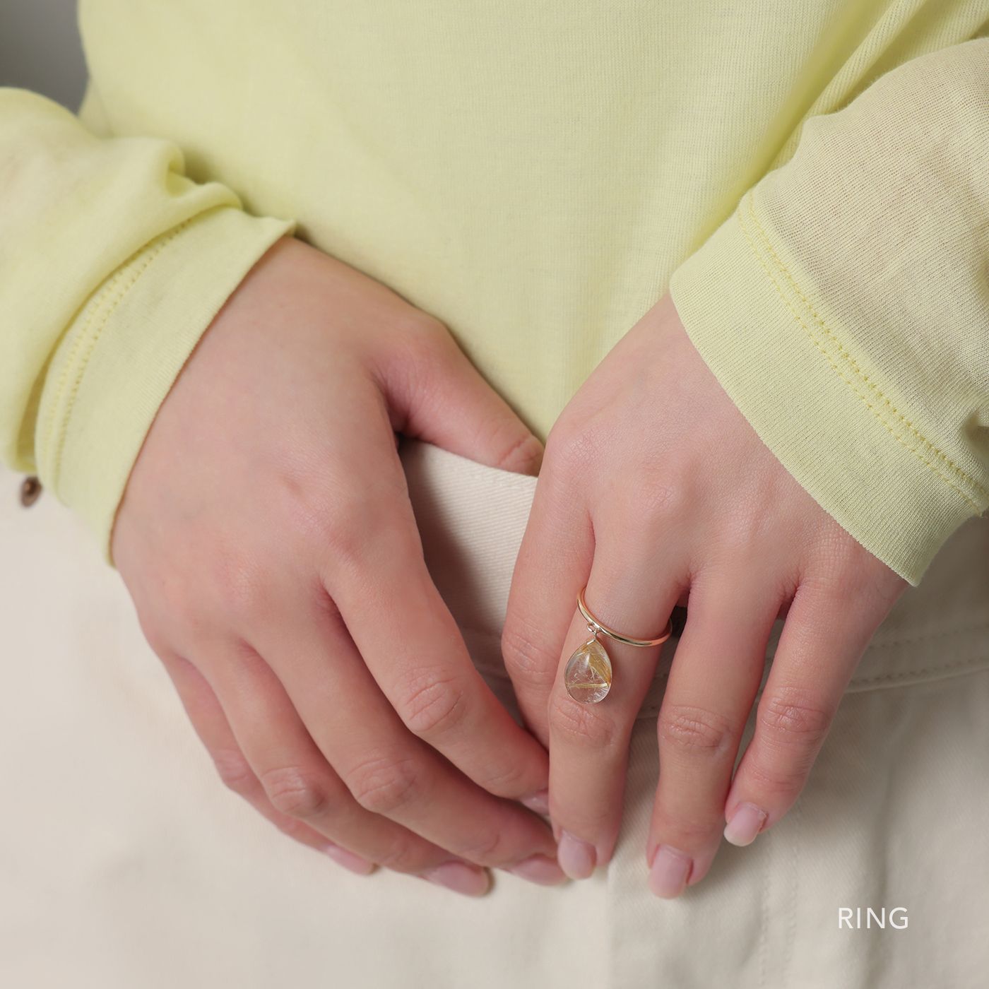 シンプルなリングに、ティアドロップ型のルチルクォーツを揺れるようにあしらいました。