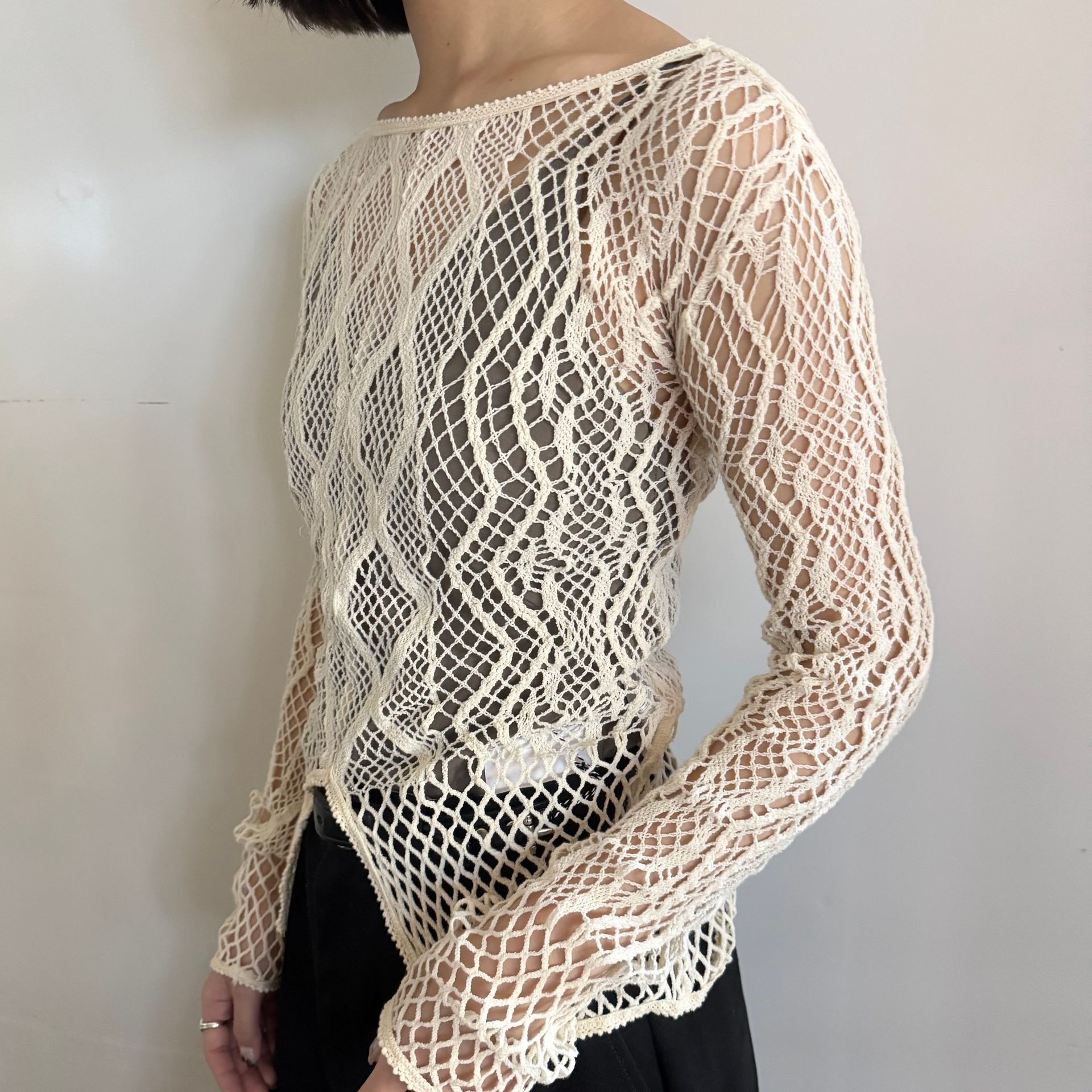 EUCHRONIAは記憶とレースをリンクさせた商品作りをしているブランド。国内のトーションレースの産地でもある栃木県足利市にて作成した、 オリジナル柄のストレッチレースのカットソー。