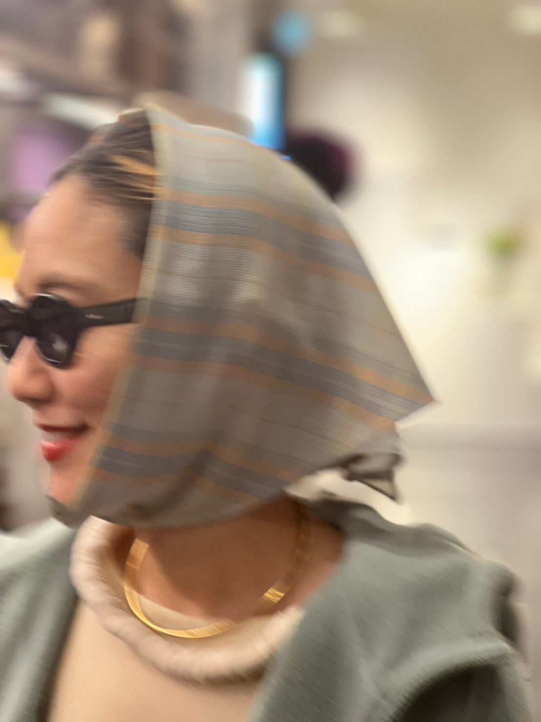デッドストックの梳毛先染めウールファブリックはシーズンレスで使用できる素材感で、バンダナのようなカジュアルさと、他にはない特徴 的なカラーリングがスタイリングにポイントをつくってくれるアイテム。