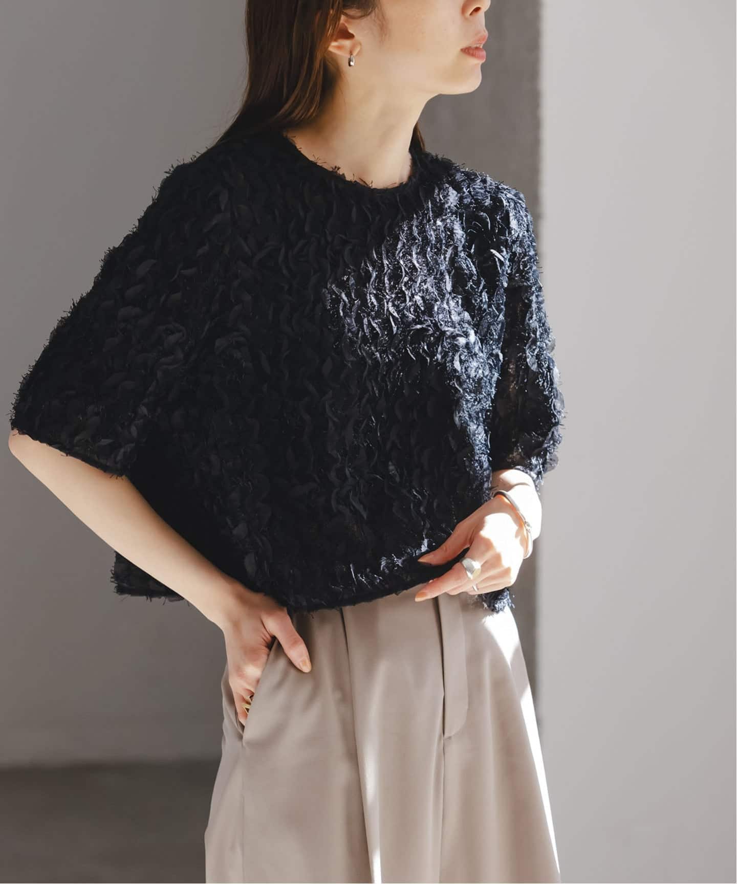 ■オーガンジーリップルラグランブラウス