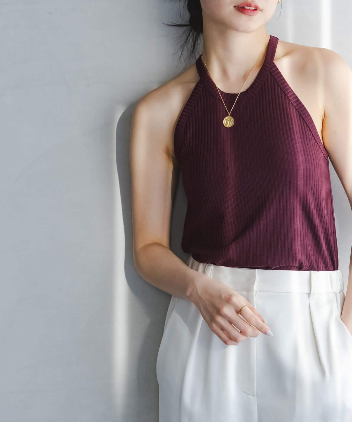 ■ボトルネックスリーブレスニット