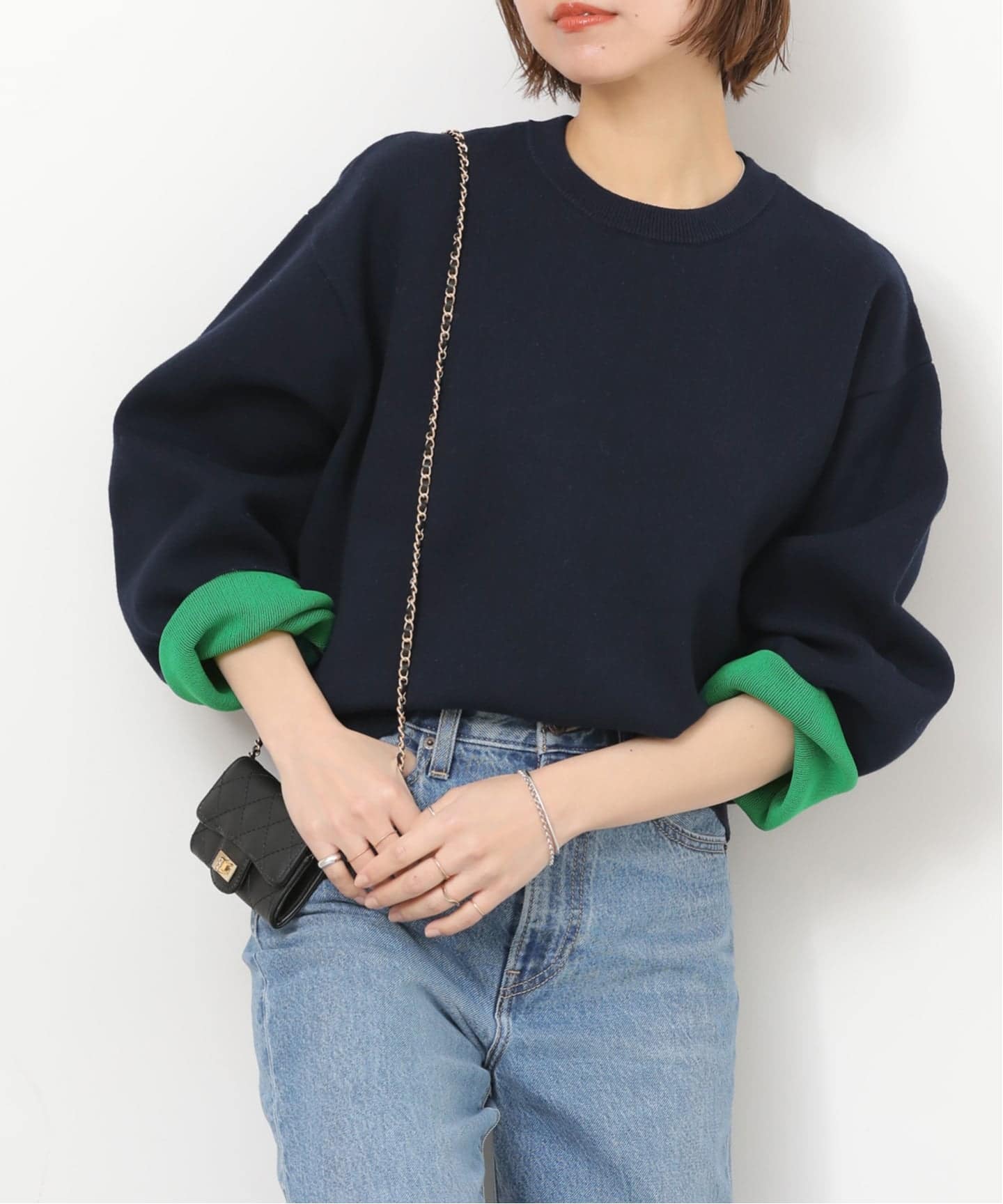 裏配色で、袖を折り返していただくと