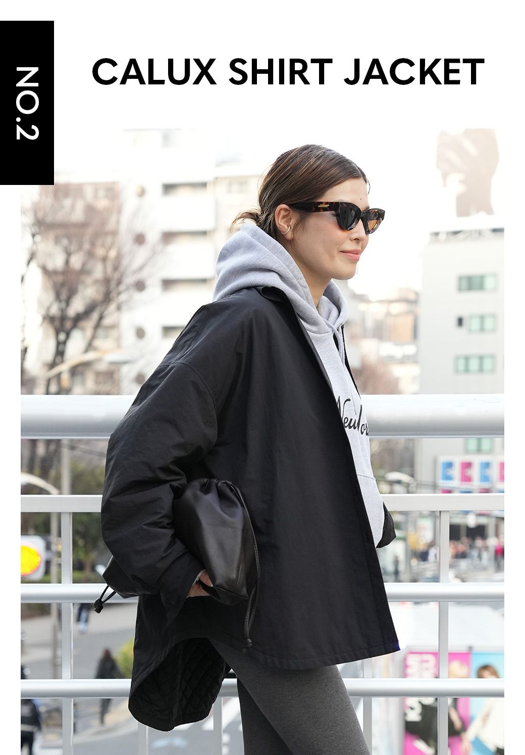 アウターに忍ばせて立体的なフードとのレイヤードを楽しむのも気分。