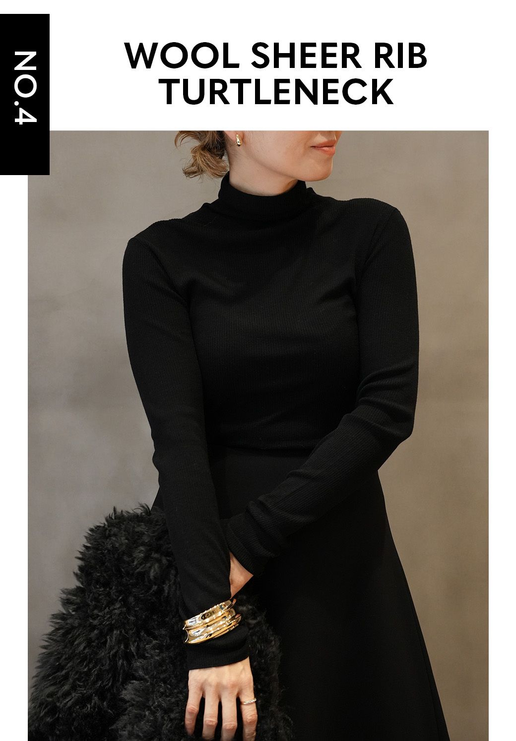 シアーリブがモダンなスタイルをつくるタートルニット。
