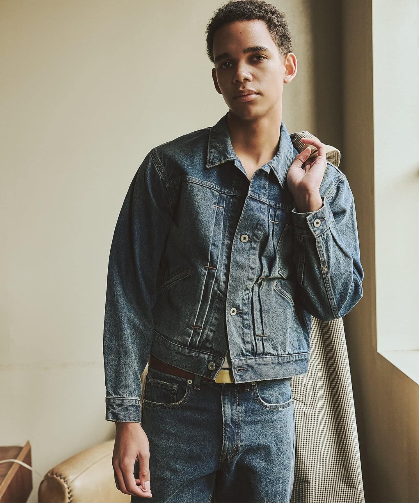 セットアップはもちろん、単体でもスタイリングの主役になる、しっかり存在感のあるデニムジャケットです。
