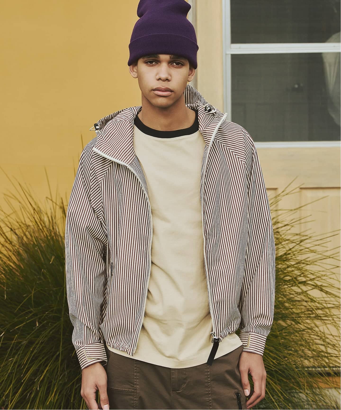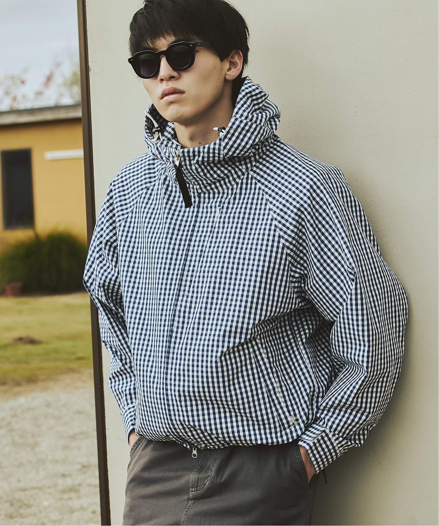 トラディショナルなチェックやストライプ柄を落とし込んだ、クラシックムード漂うフード付きブルゾン。